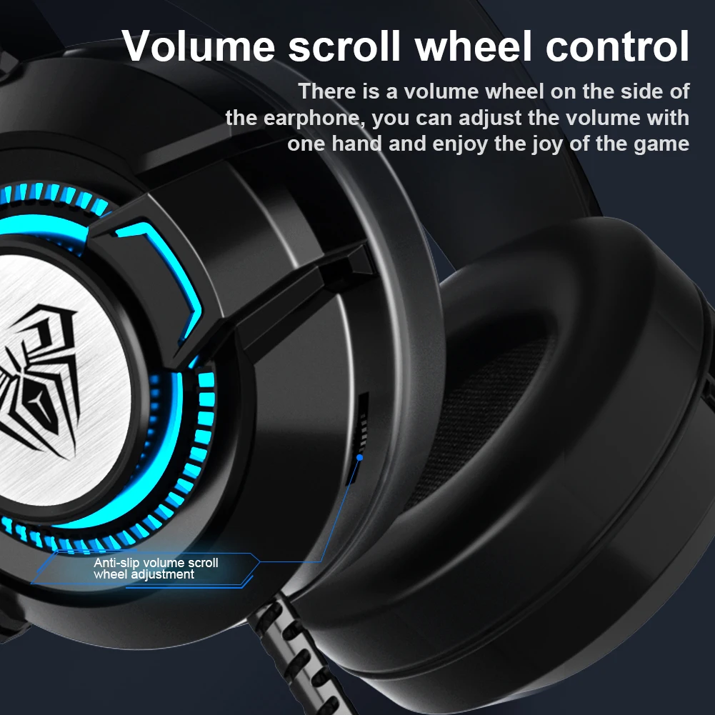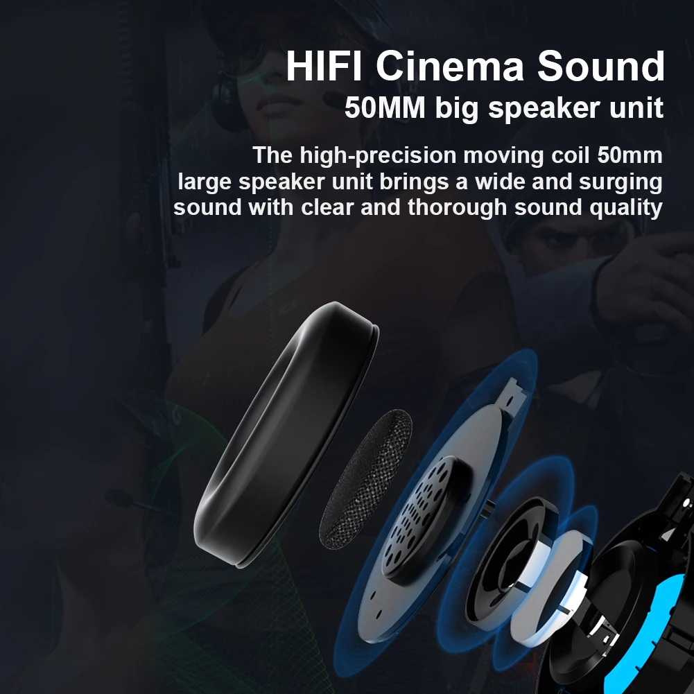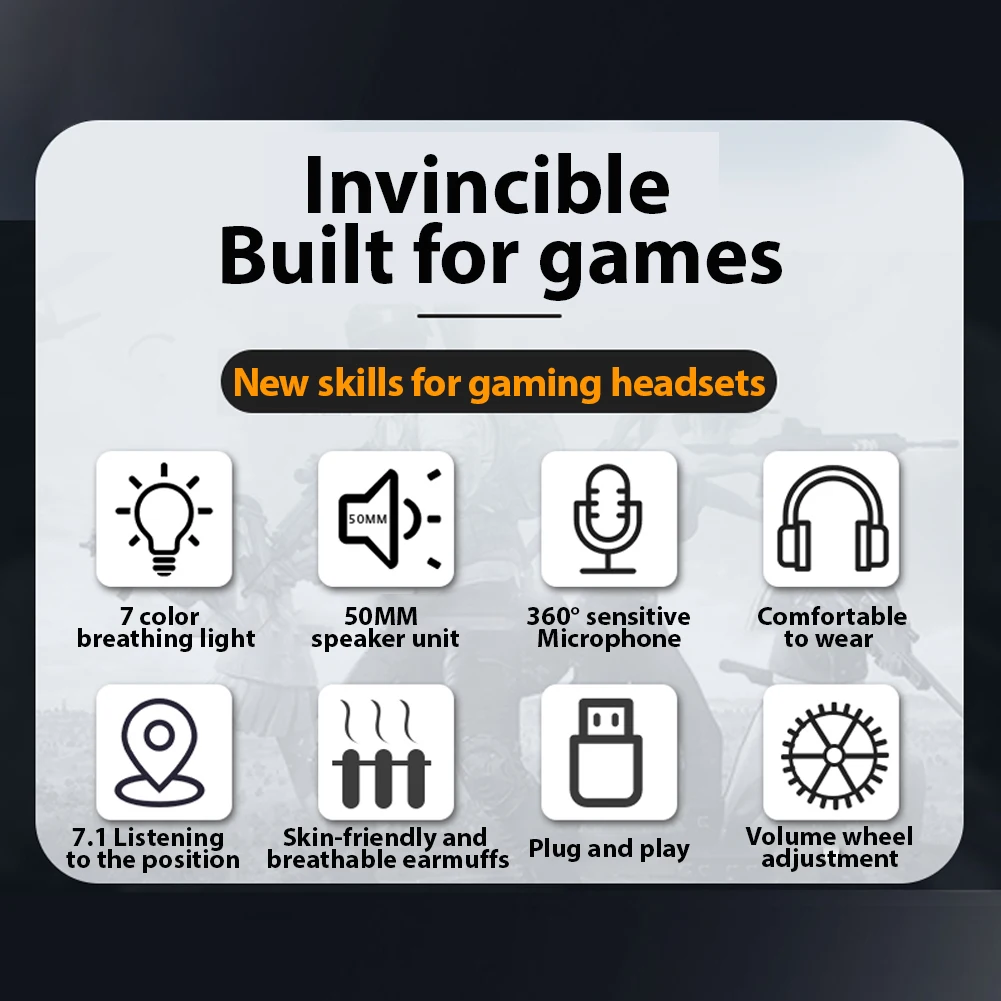 -Luces de respiración de 7 colores/unidad de altavoz de 50MM/micrófono sensible de 360 °/cómodo de llevar/7,1 para escuchar voz/orejeras transpirables y respetuosas con la piel/Plug and Play/ajuste de la rueda de volumen