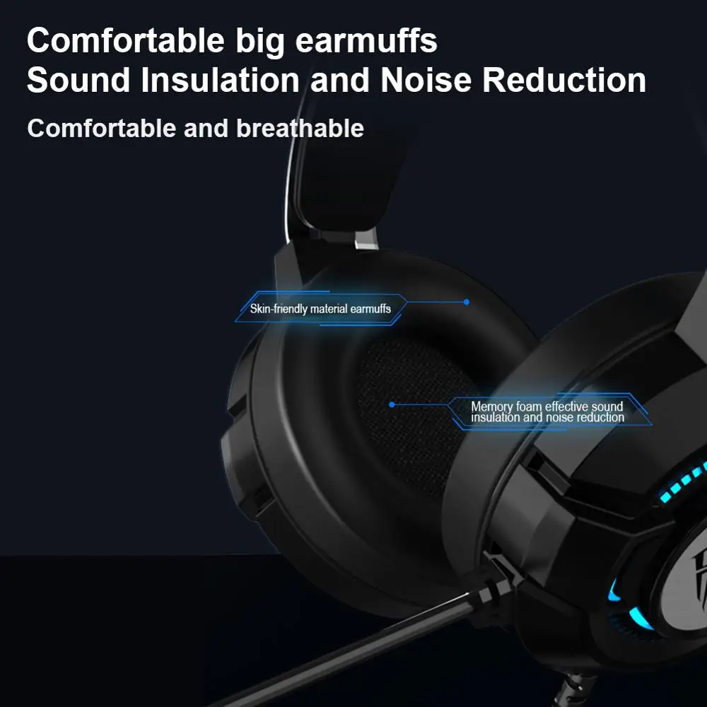 -Luces de respiración de 7 colores/unidad de altavoz de 50MM/micrófono sensible de 360 °/cómodo de llevar/7,1 para escuchar voz/orejeras transpirables y respetuosas con la piel/Plug and Play/ajuste de la rueda de volumen