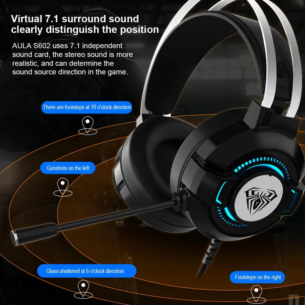 Comprar AULA-auriculares S602 con cable para videojuegos, audífonos estéreo de graves con luz RGB, con cancelación de ruido y micrófono para ordenador de escritorio y PC