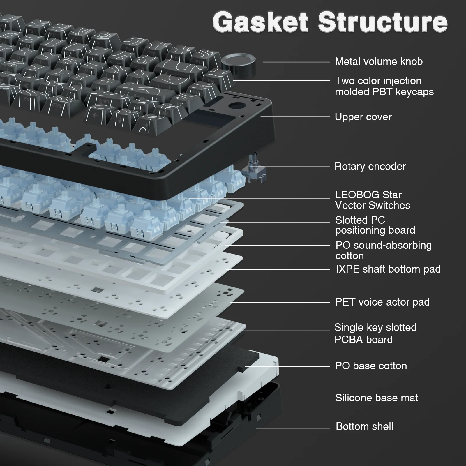 F75 está equipado con una PCB intercambiable en caliente para garantizar el reemplazo o cambio gratuito de los interruptores.Es compatible con la mayoría de los interruptores mecánicos de 3 y 5 pines.Los interruptores personalizados preinstalados que brindan una capacidad de respuesta táctil inigualable con una vida útil de hasta 60 millones de pulsaciones de tecla.
