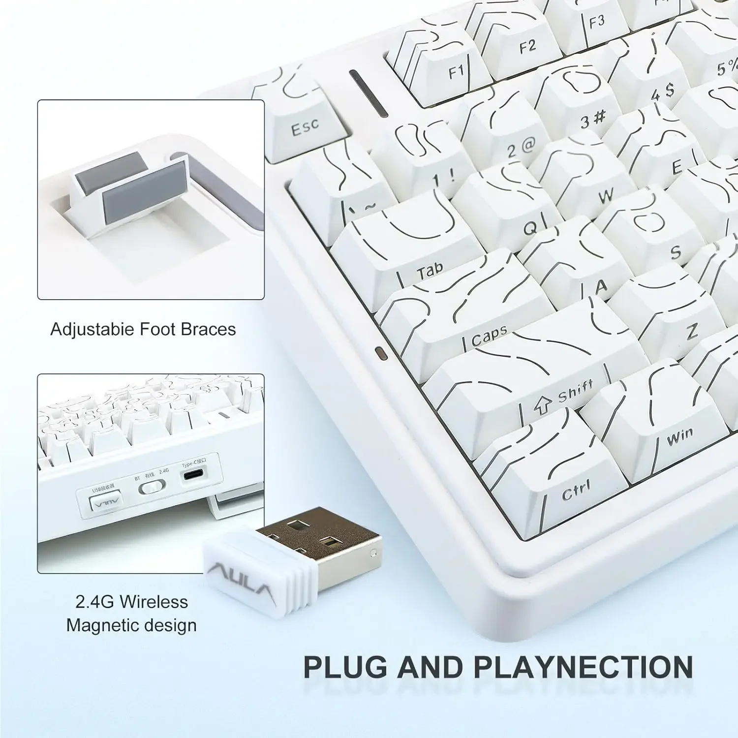 Comprar AULA F75 Teclado mecánico inalámbrico para juegos RGB luz personalizada 75% diseño Tri modos contorno lateral tallado PBT Keycap teclado