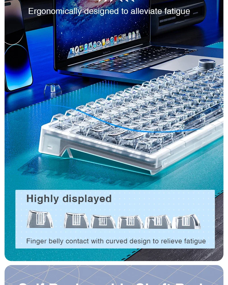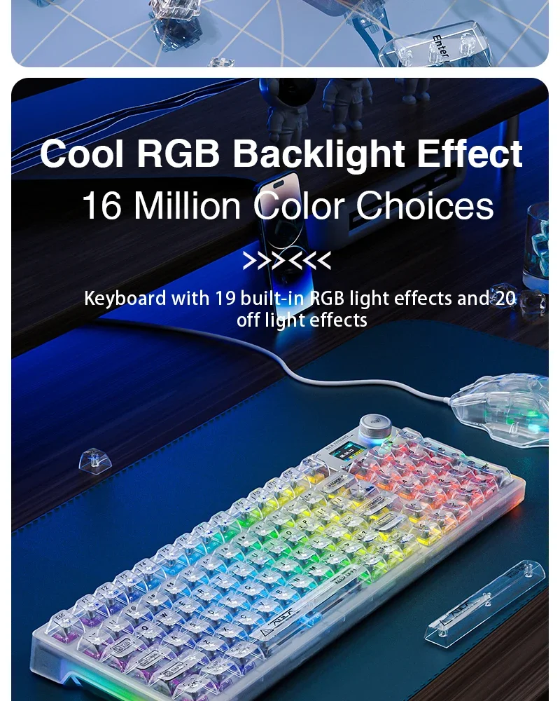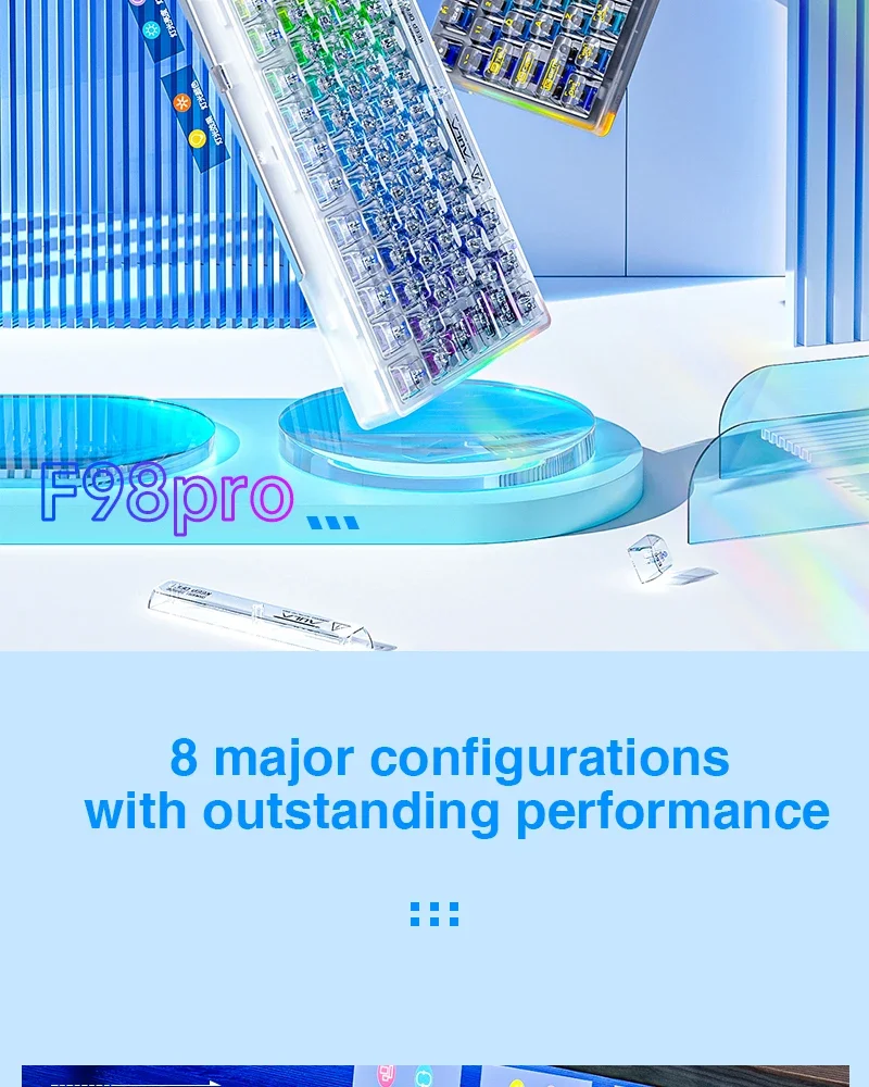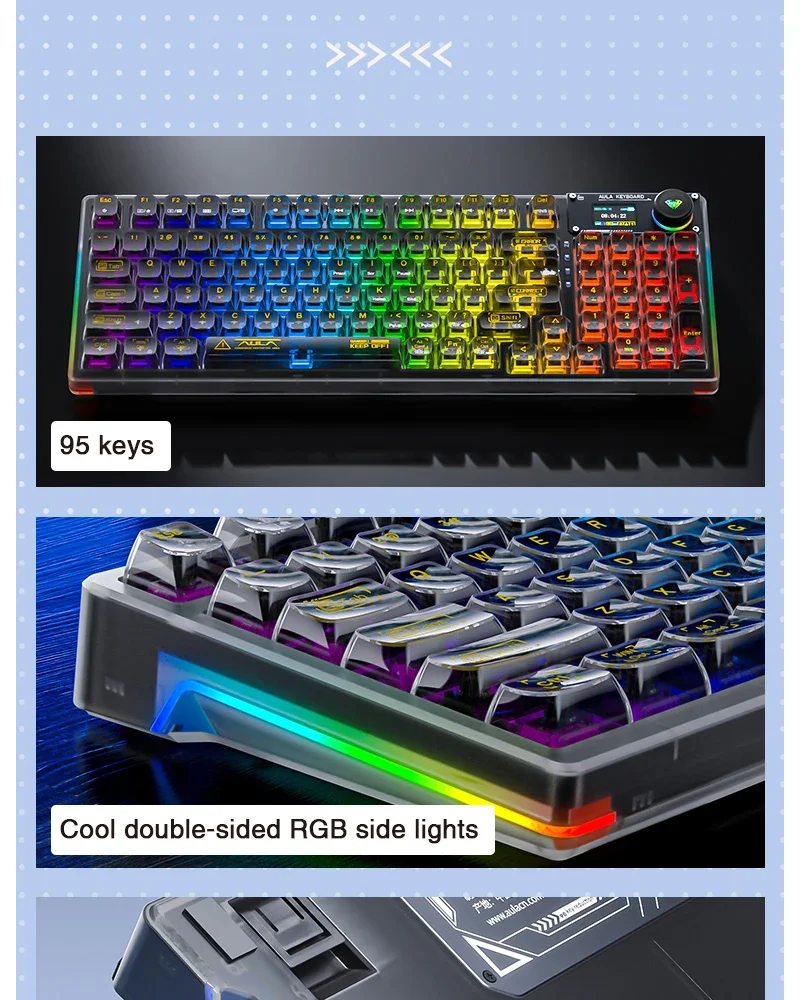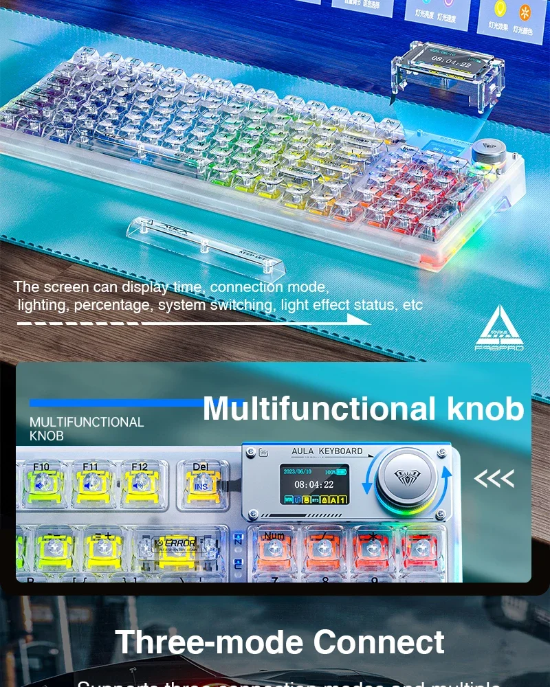 Comprar AULA F98PRO Teclado mecánico inalámbrico para jugar Bluetooth 2,4G con teclas intercambiables en caliente y diseño personalizado retroiluminado RGB transparente