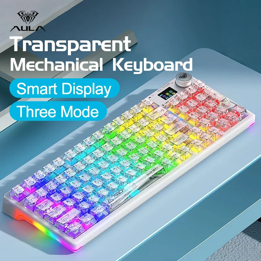 Comprar AULA F98PRO Teclado mecánico inalámbrico para jugar Bluetooth 2,4G con teclas intercambiables en caliente y diseño personalizado retroiluminado RGB transparente