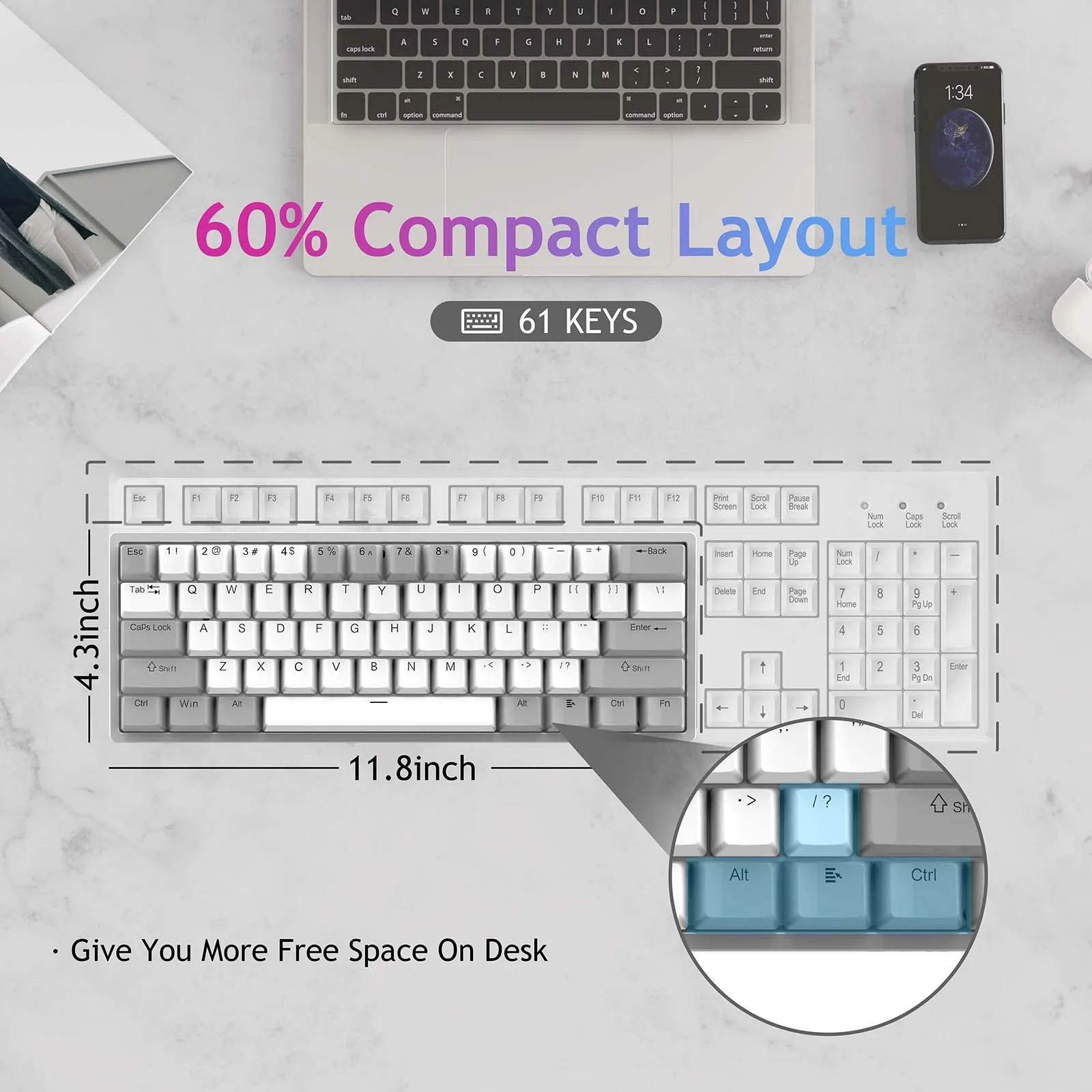 Comprar AULA-miniteclado mecánico para juegos F3261, USB, efecto RGB, interruptor rojo, 61 teclas, cable desmontable separado para Mac y Windows
