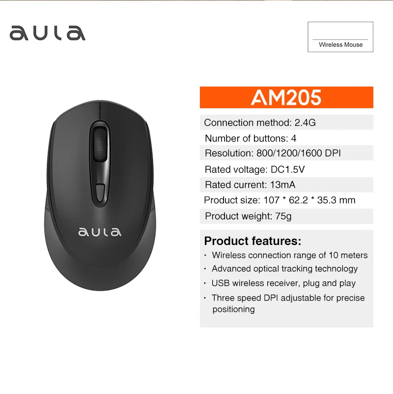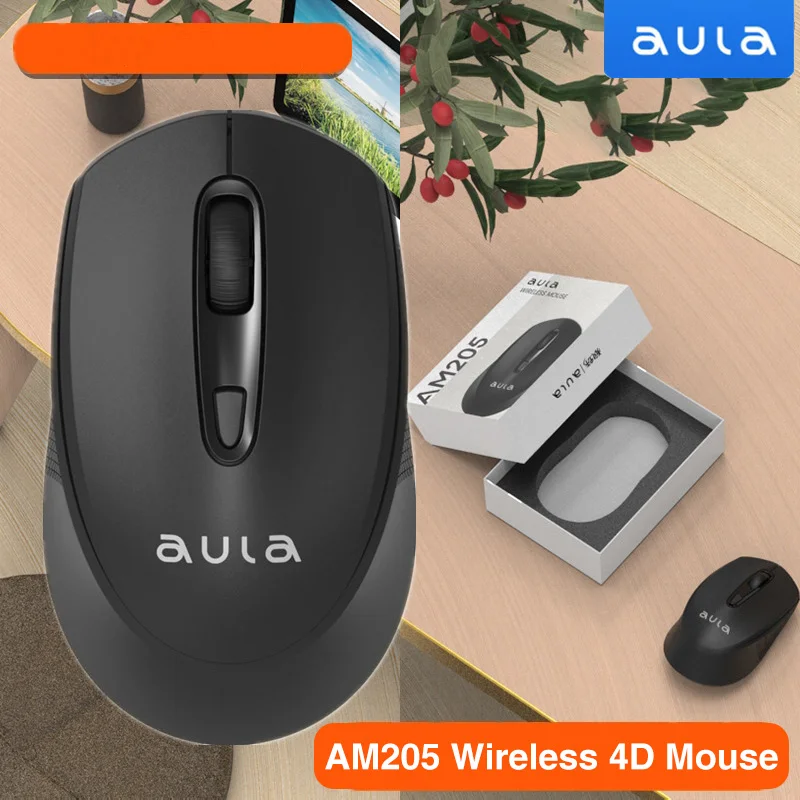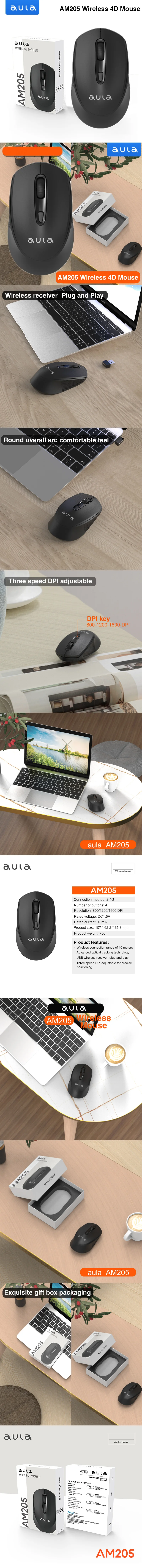 Comprar AULA-ratón inalámbrico AM205 para juegos, Mouse ergonómico con conexión de 2,4G, 1600 DPI, para ordenador portátil