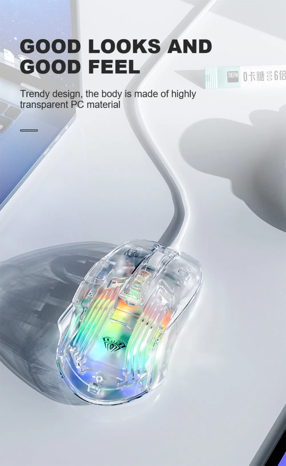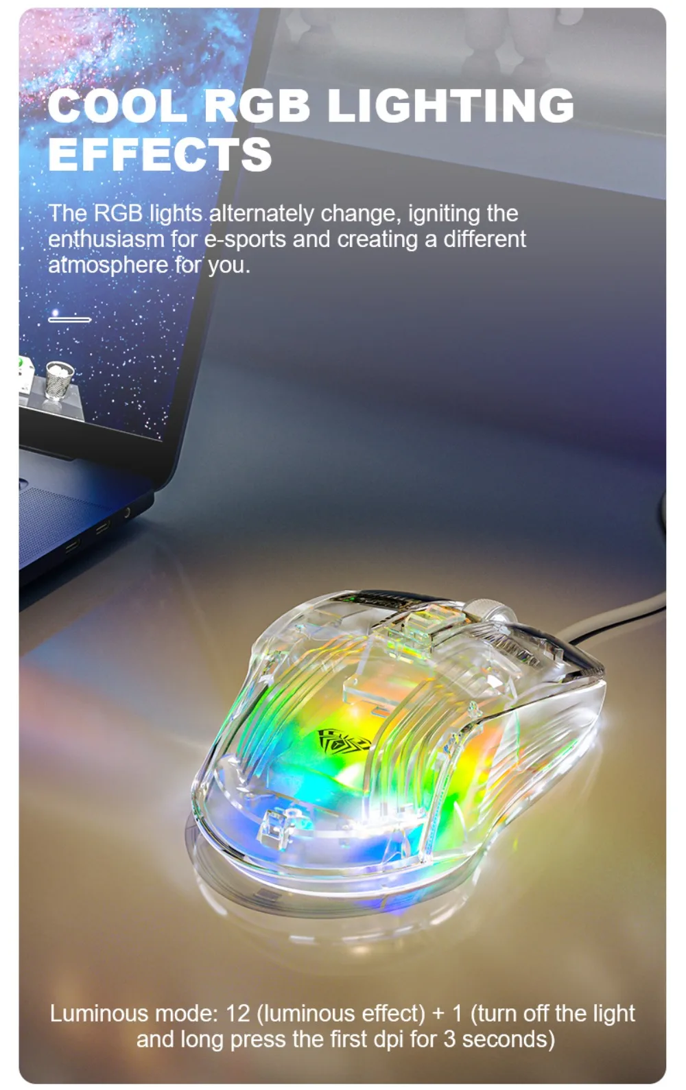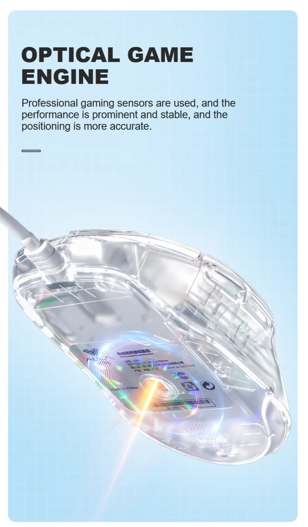 Comprar AULA-ratón S80 para juegos, periférico con cable RGB, transparente, ergonómico, 7200 DPI, para MacBook, tabletas, portátiles, PC