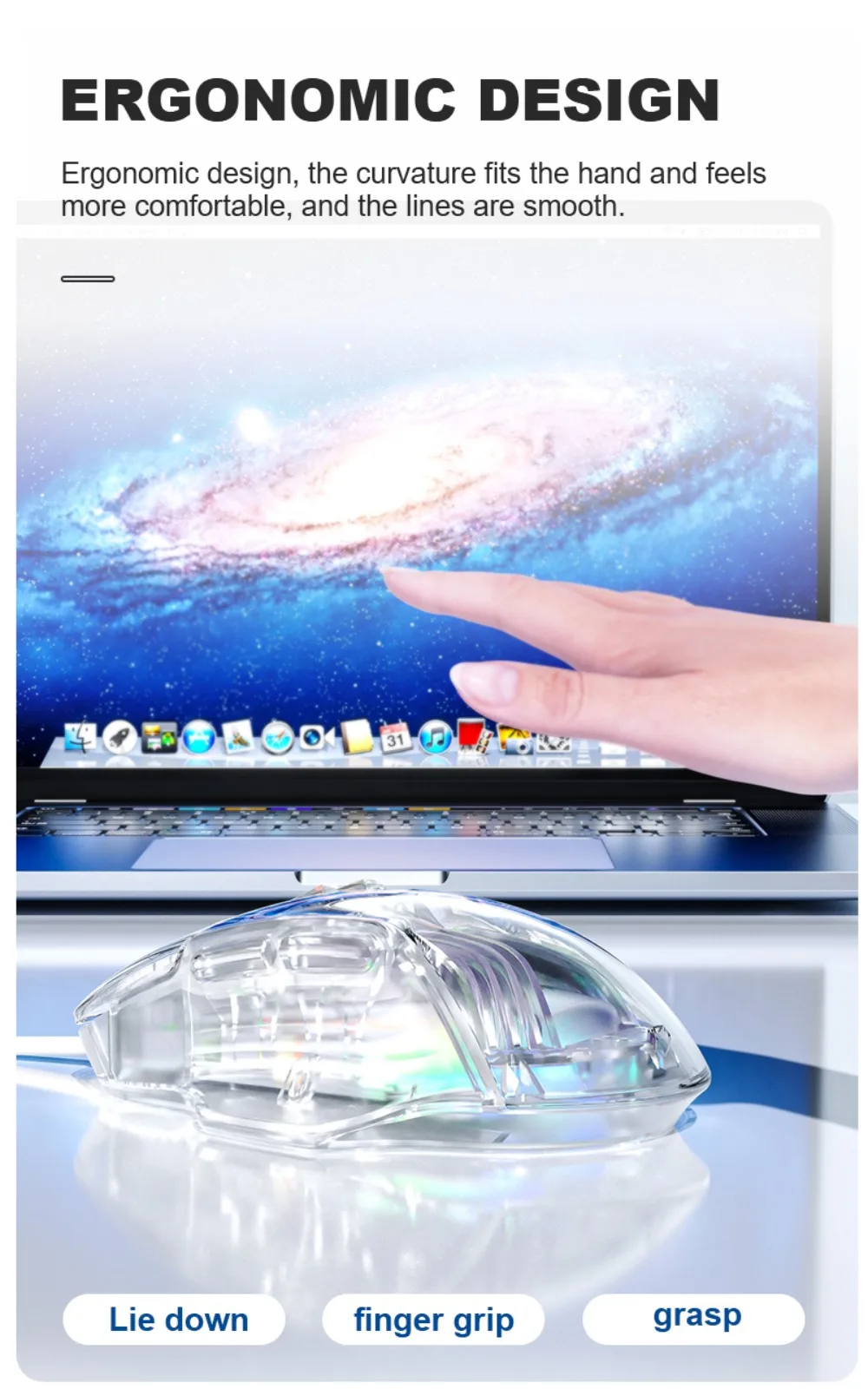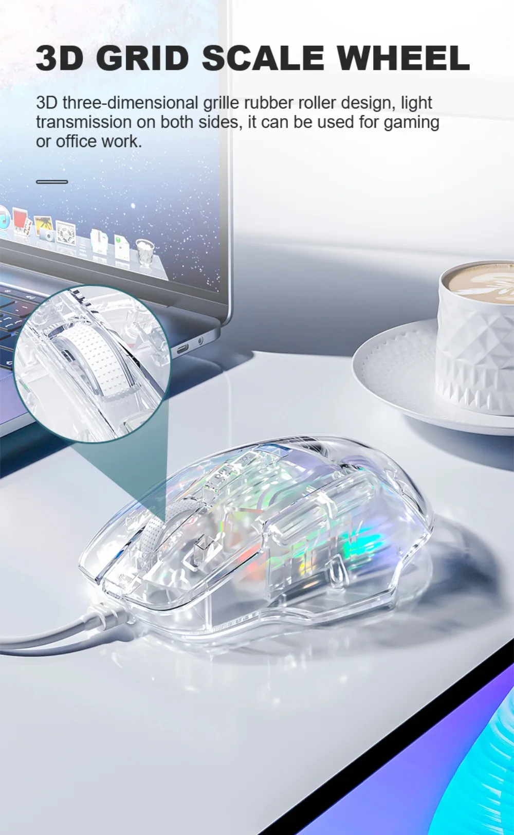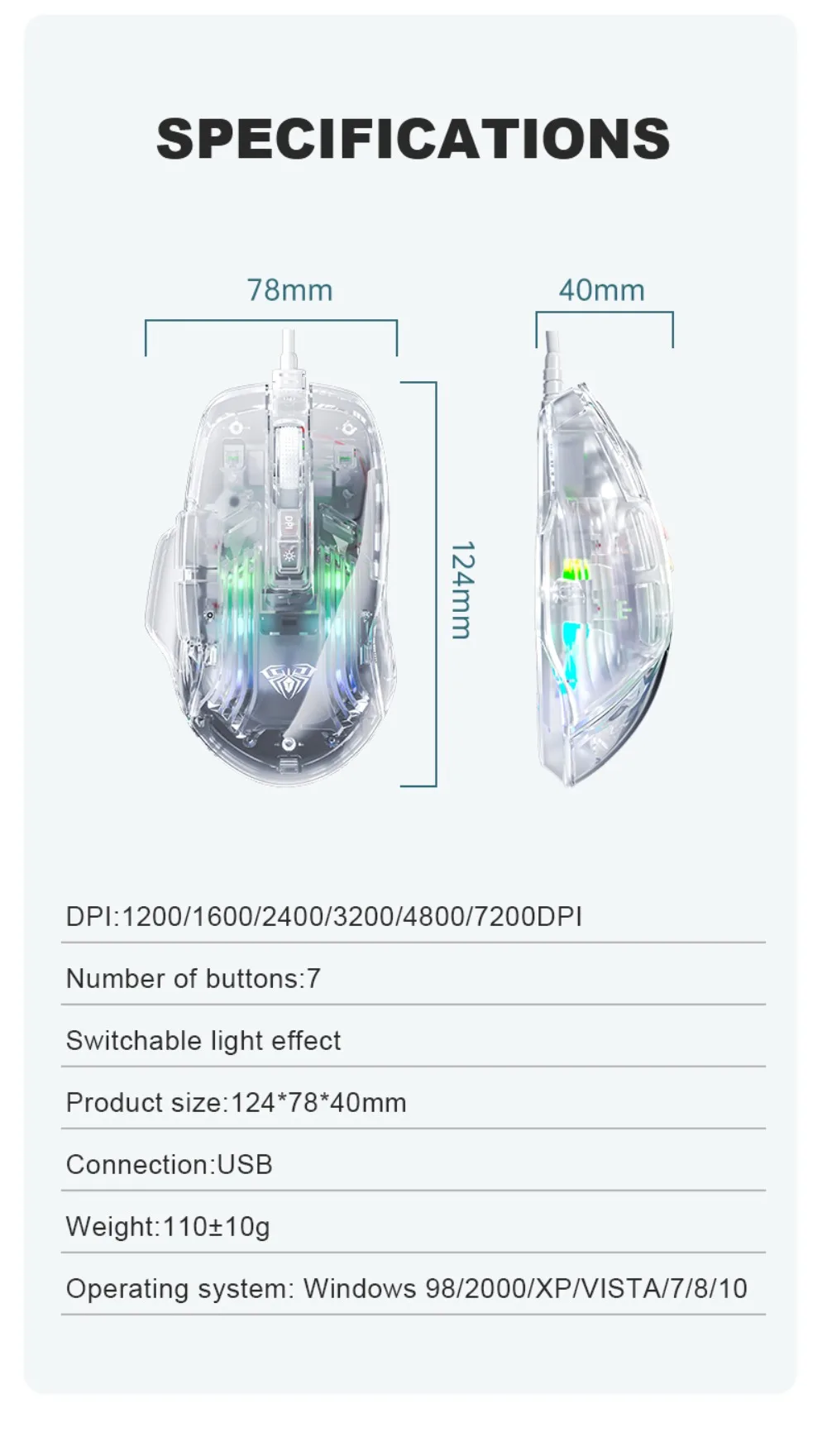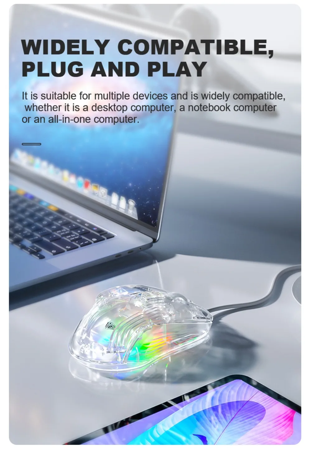 Comprar AULA-ratón S80 para juegos, periférico con cable RGB, transparente, ergonómico, 7200 DPI, para MacBook, tabletas, portátiles, PC
