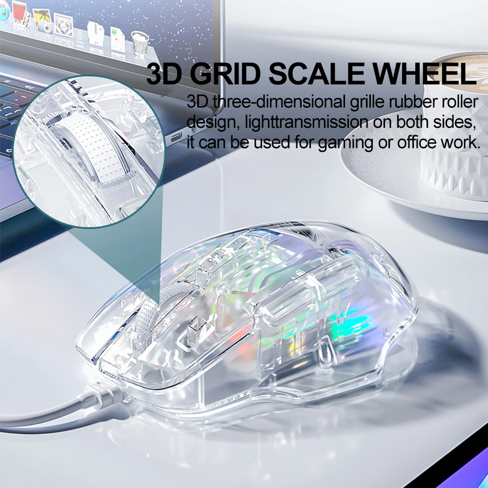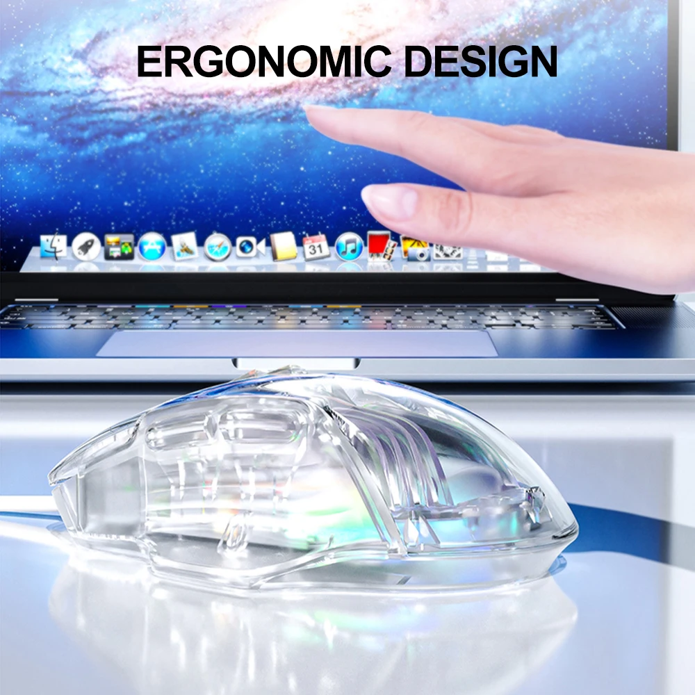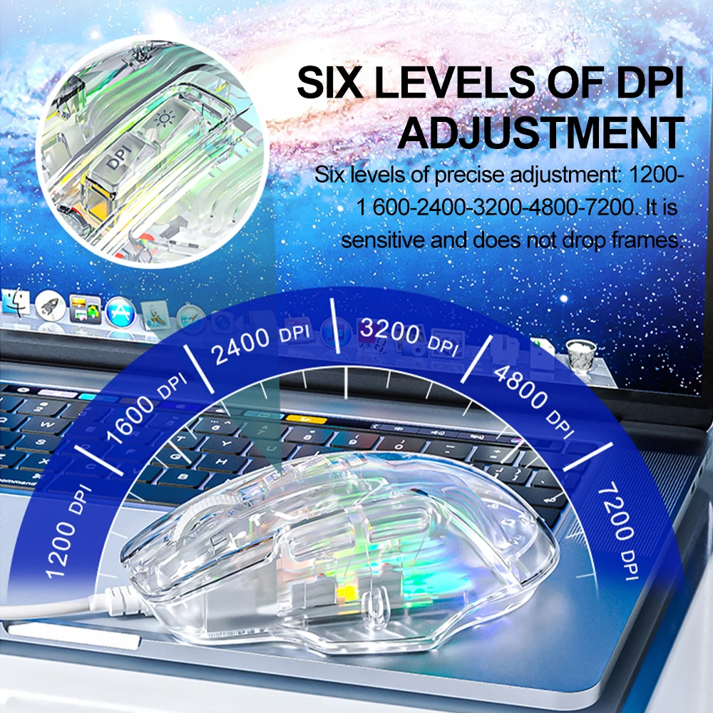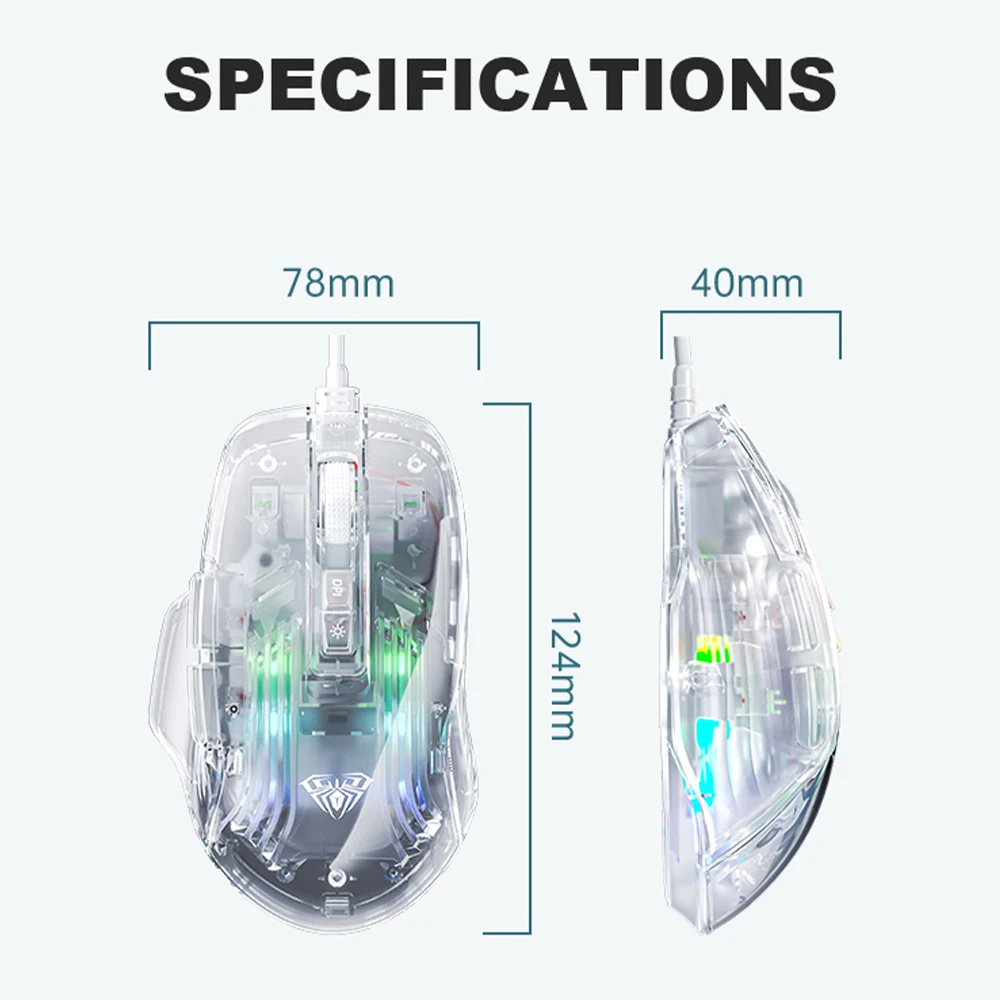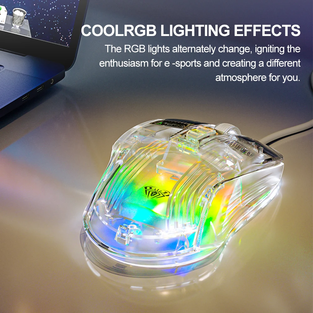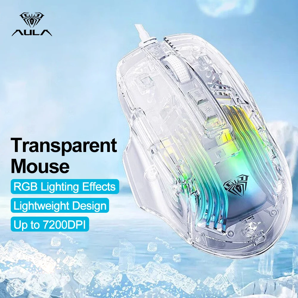 Comprar AULA-ratón S80 para juegos, periférico con cable RGB, transparente, ergonómico, 7200 DPI, para MacBook, tabletas, portátiles, PC