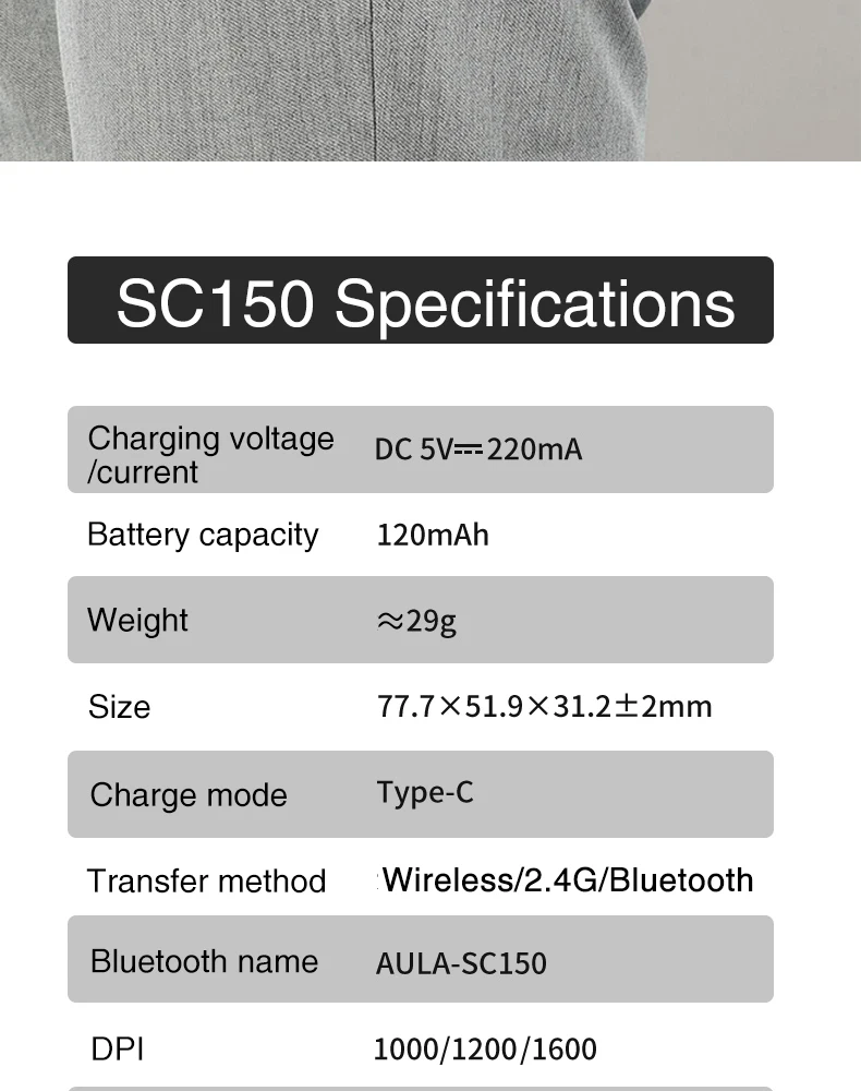 Comprar AULA SC150 Super Mini Ratón Portátil Bluetooth 2.4G Ratón Recargable Inalámbrico 30g Ultraligero