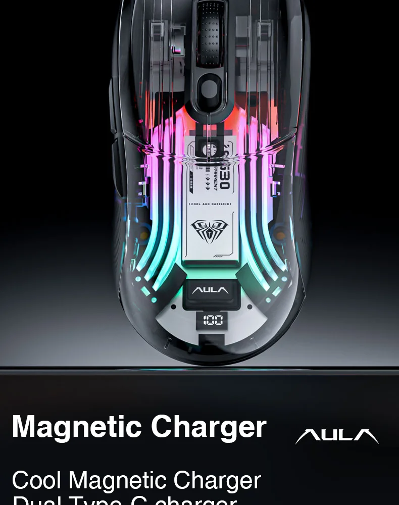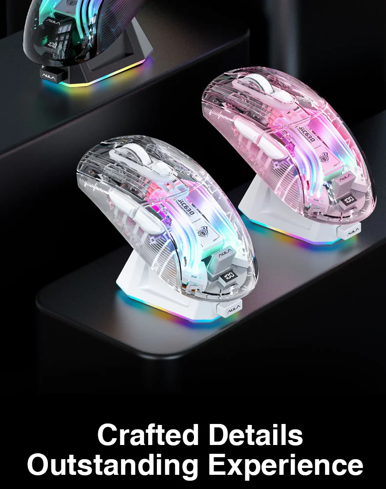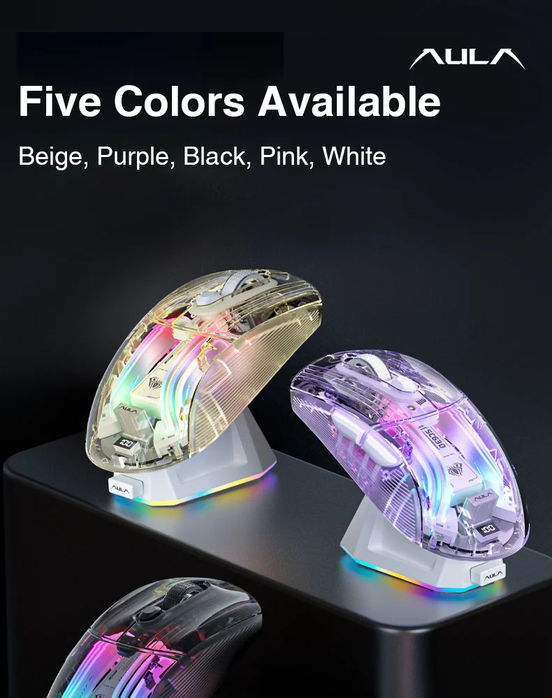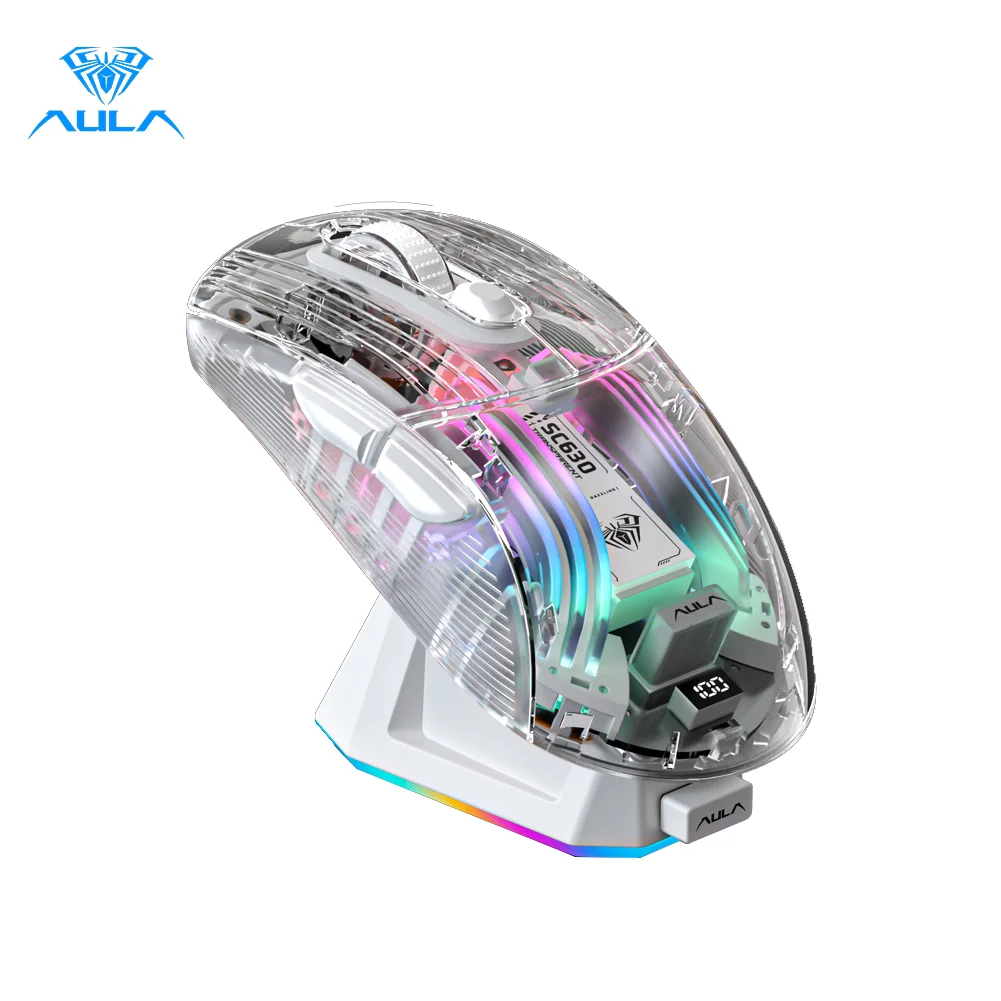 Comprar AULA SC630 Ratón RGB inalámbrico trimododo 4000 DPI Transparente 11 modos de luz RGB con base de carga