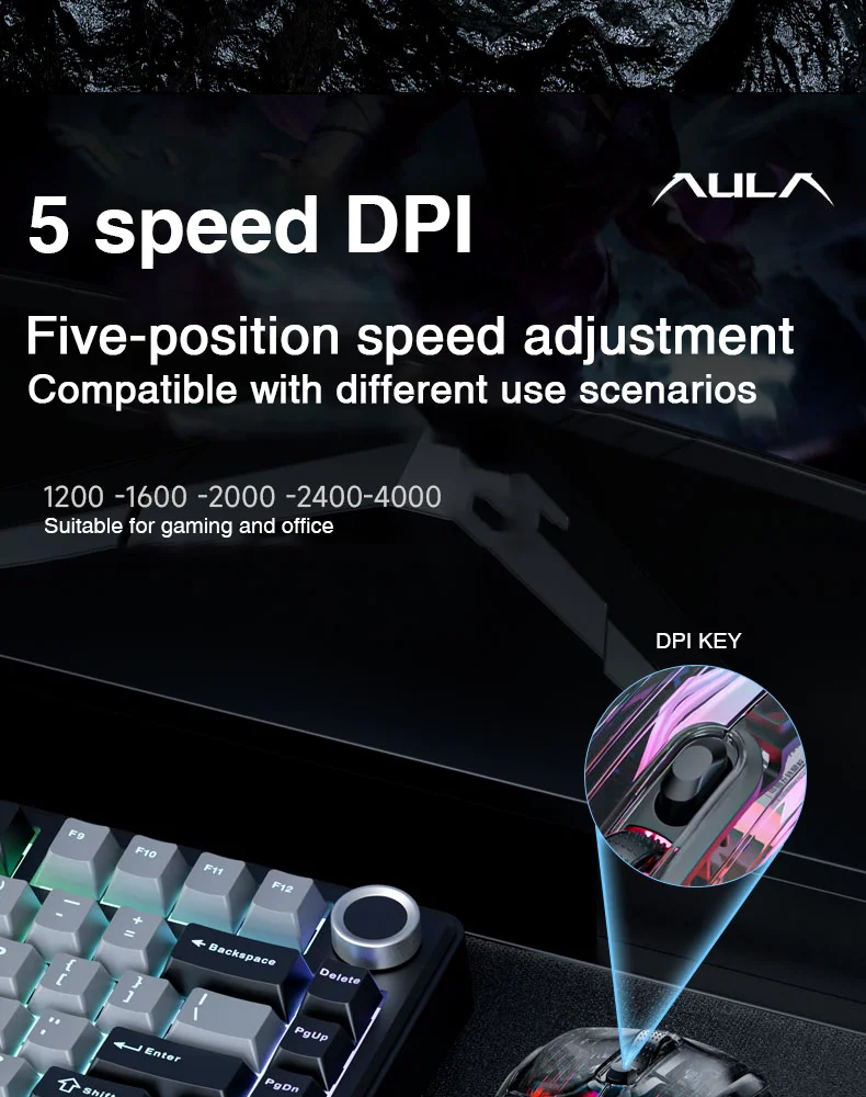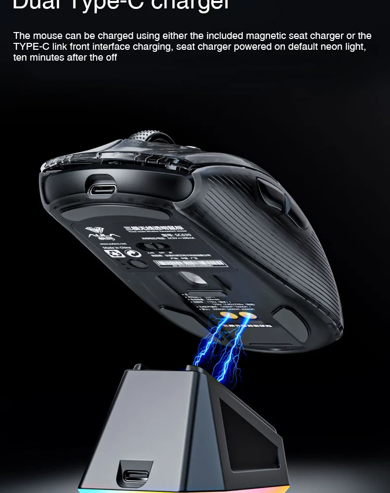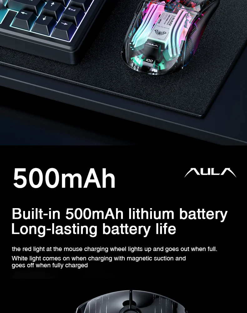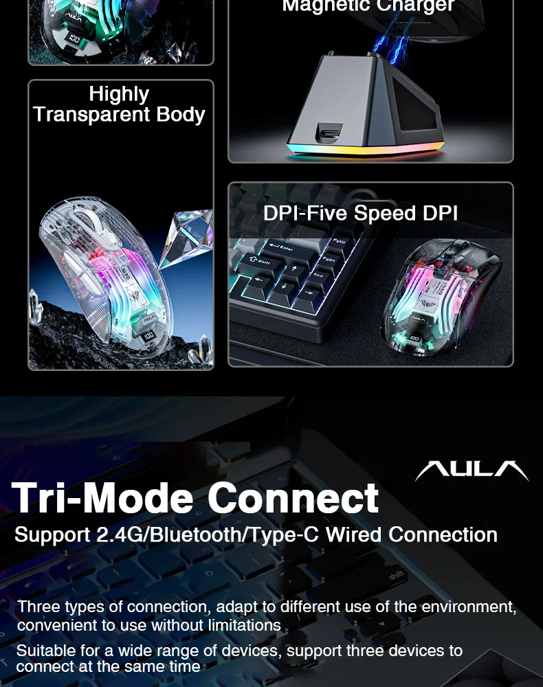 Comprar AULA SC630 Ratón RGB inalámbrico trimododo 4000 DPI Transparente 11 modos de luz RGB con base de carga
