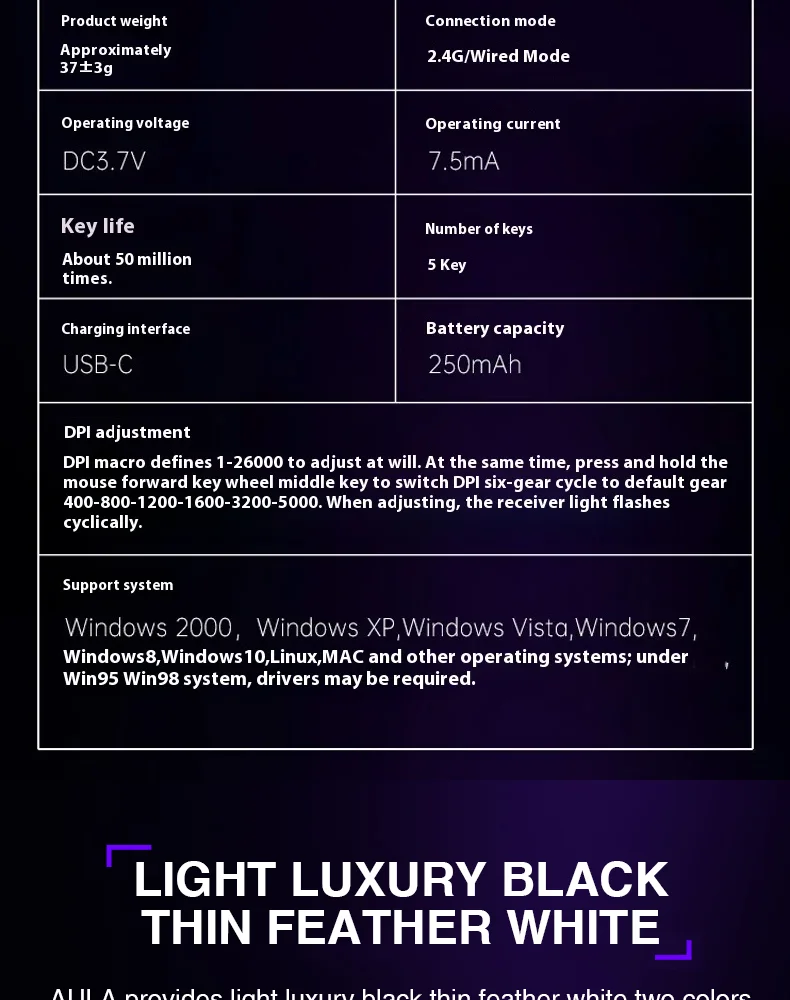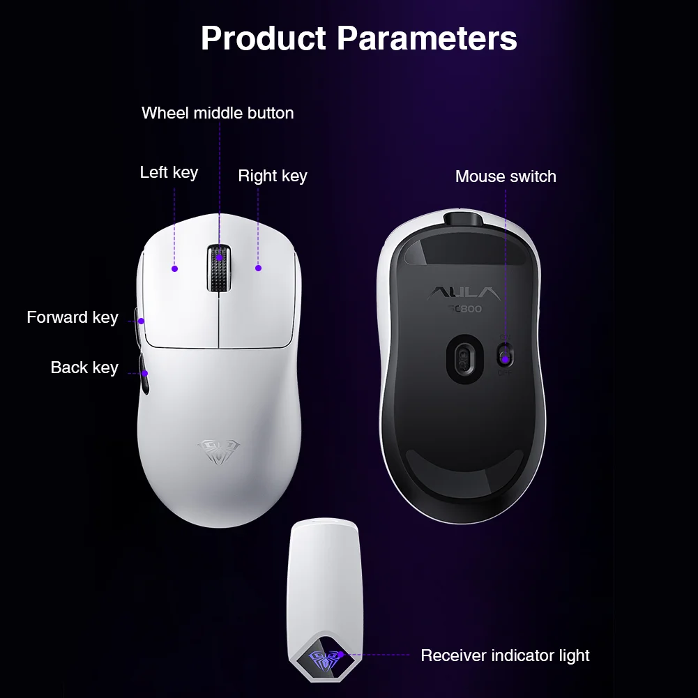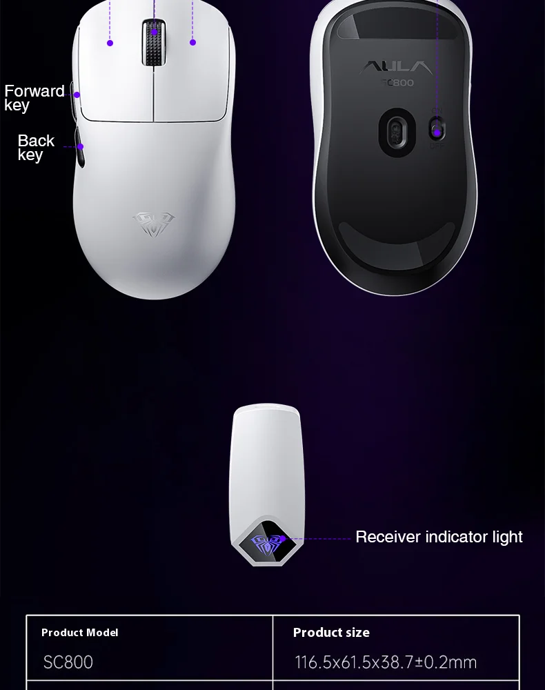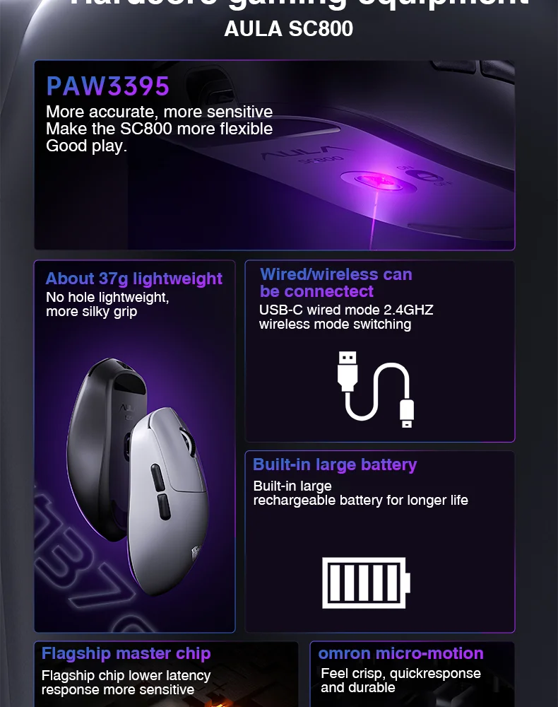 Comprar AULA SC800 8K Gamer Mouse E-sports Mouse PAW3395 Sensor TTC Gold Wheel 37g Conexión ligera de modo dual