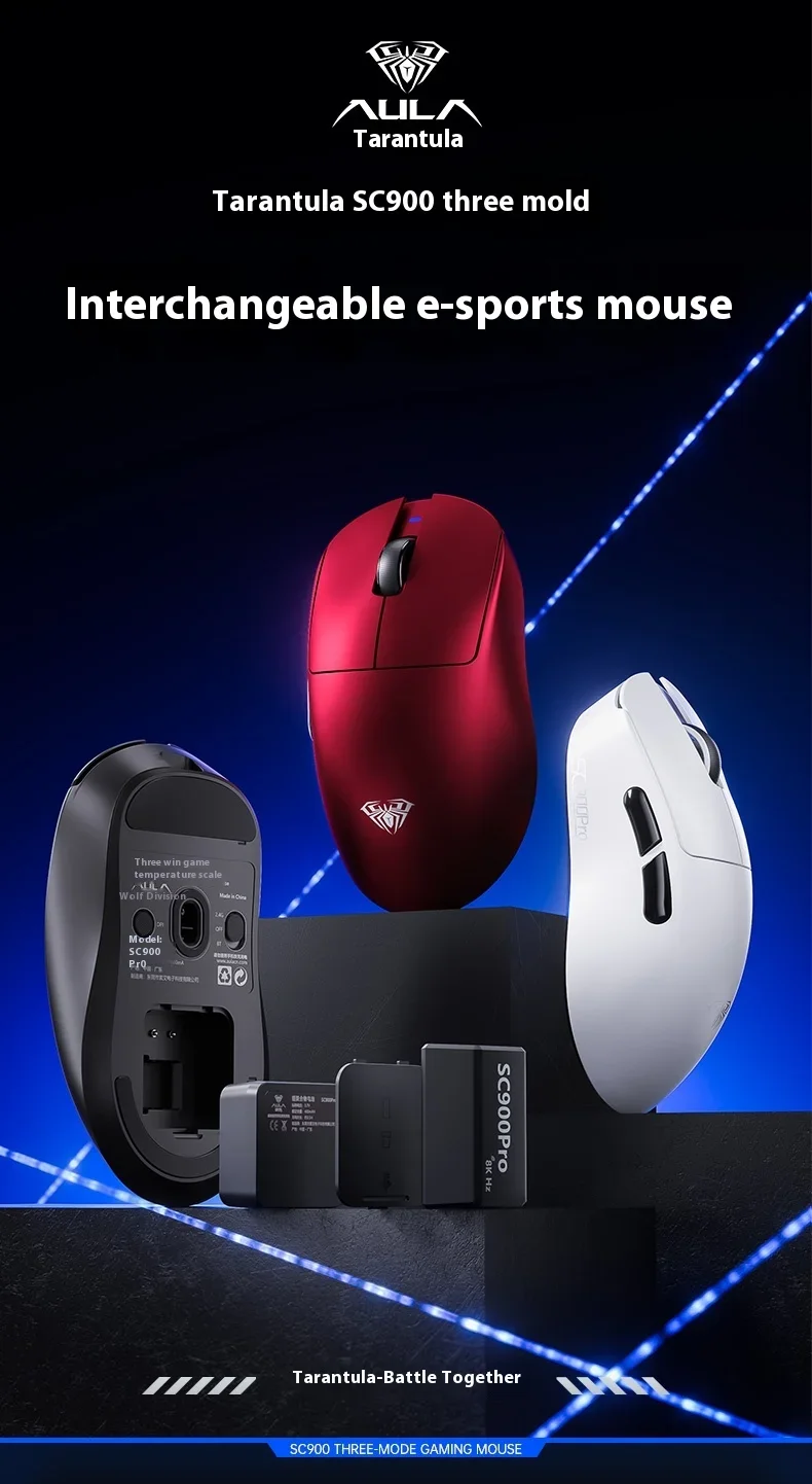 Comprar AULA SC900 Ratón inalámbrico dual 8K para deportes electrónicos, ratón multimodo PAW3950, batería reemplazable TTC 26000DPI, ratones ligeros para jugadores de PC