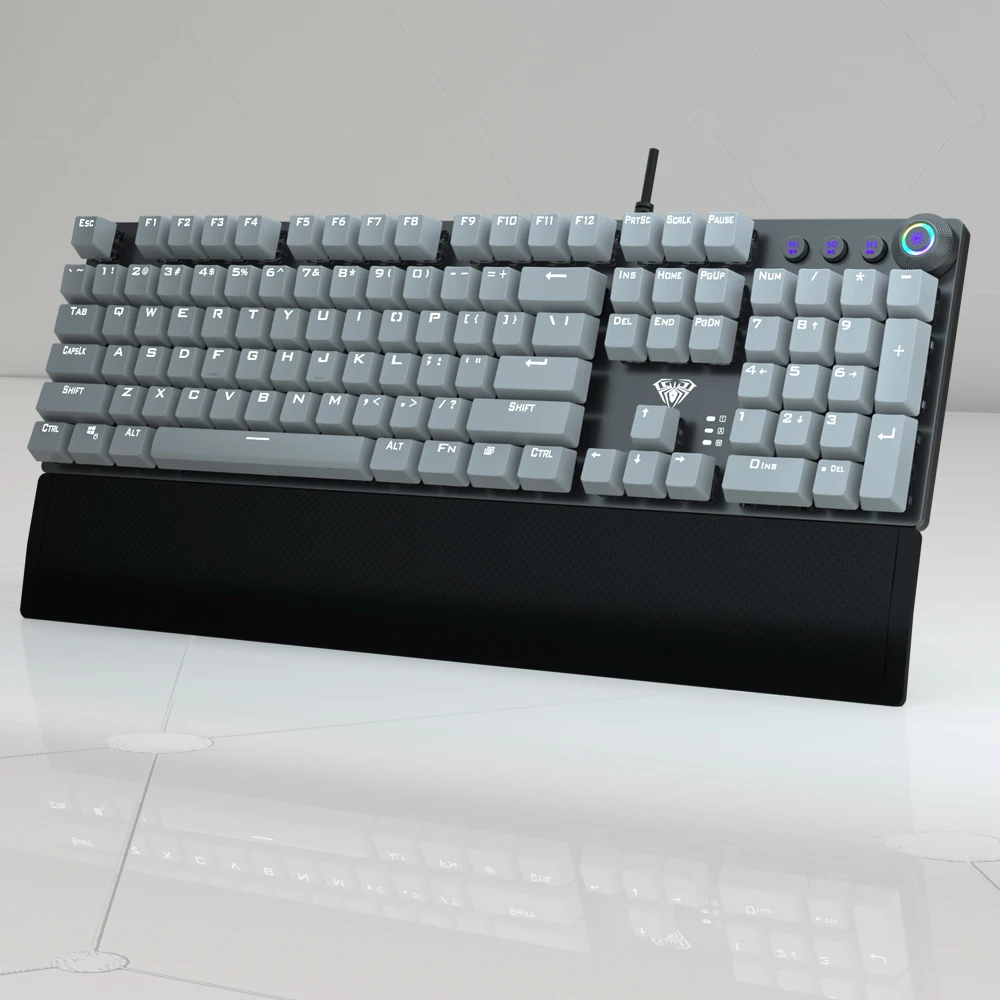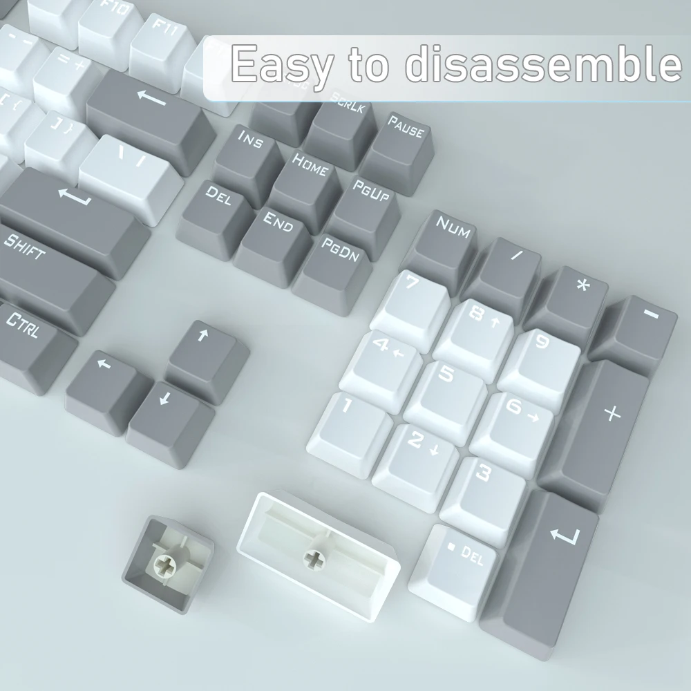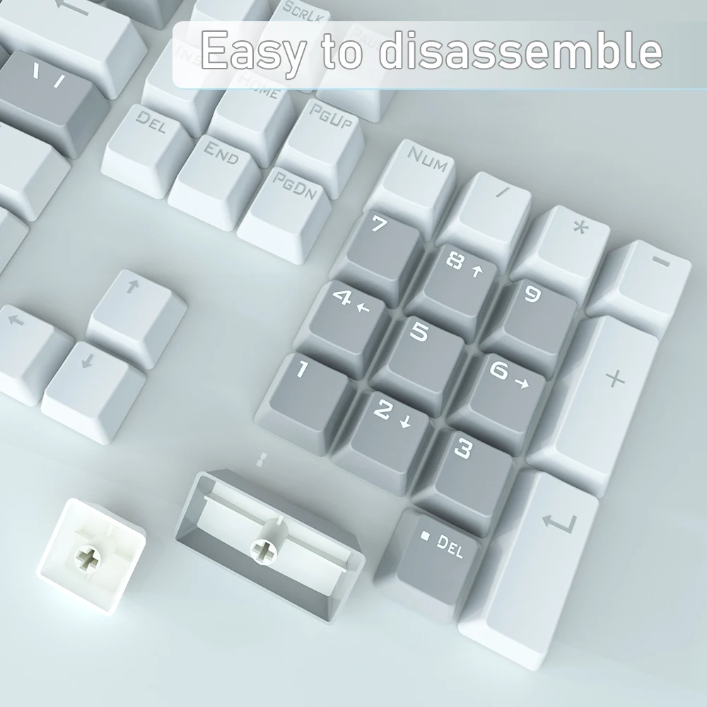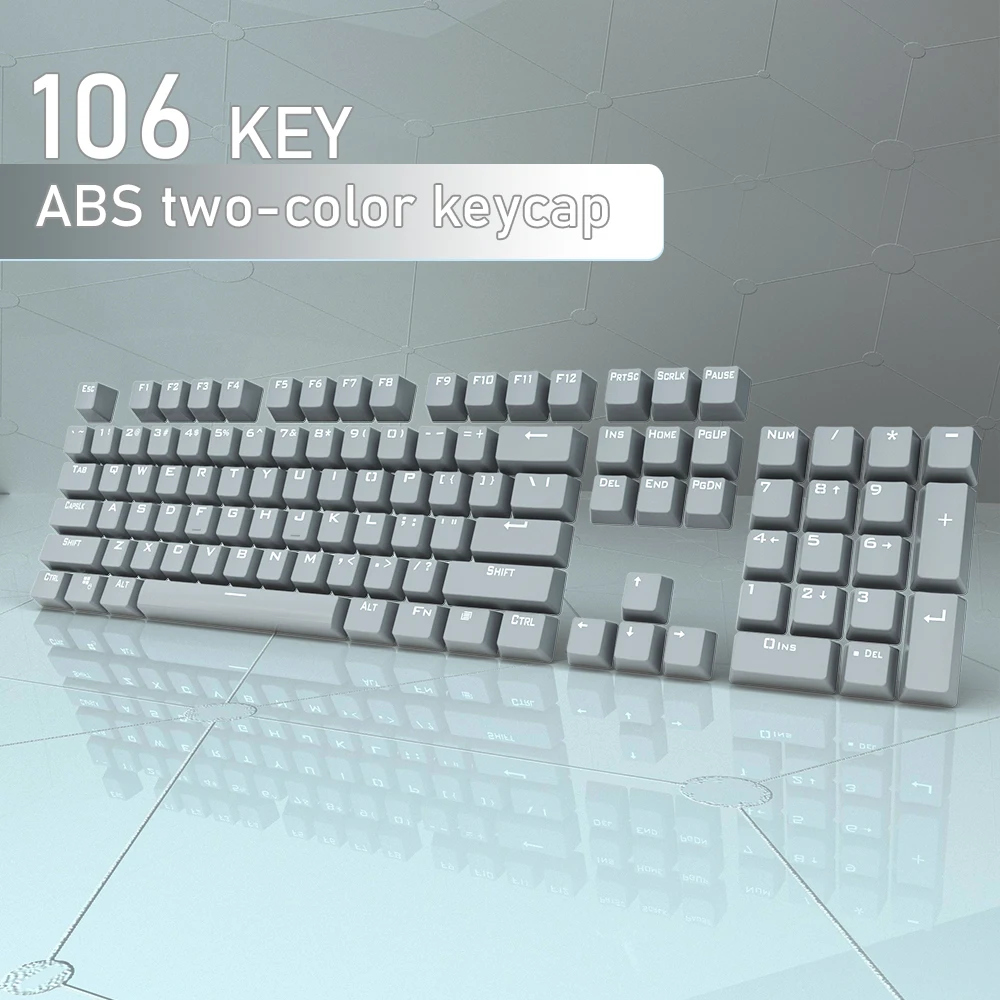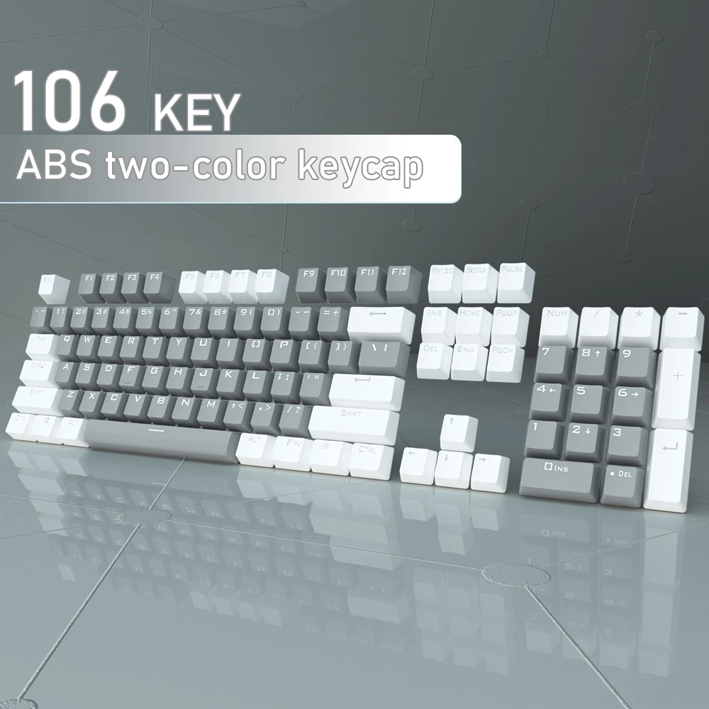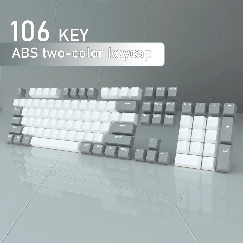 Comprar AULA-Tapa de llave mecánica de dos colores ABS, 106 teclas, gris + blanco, transmisión de luz desmontable de alta calidad, mecánica Universal