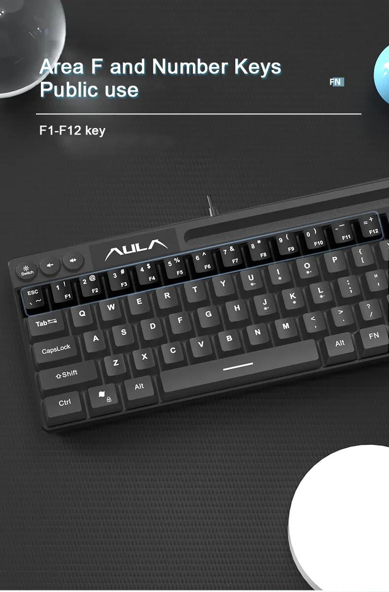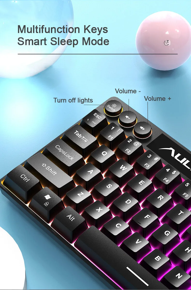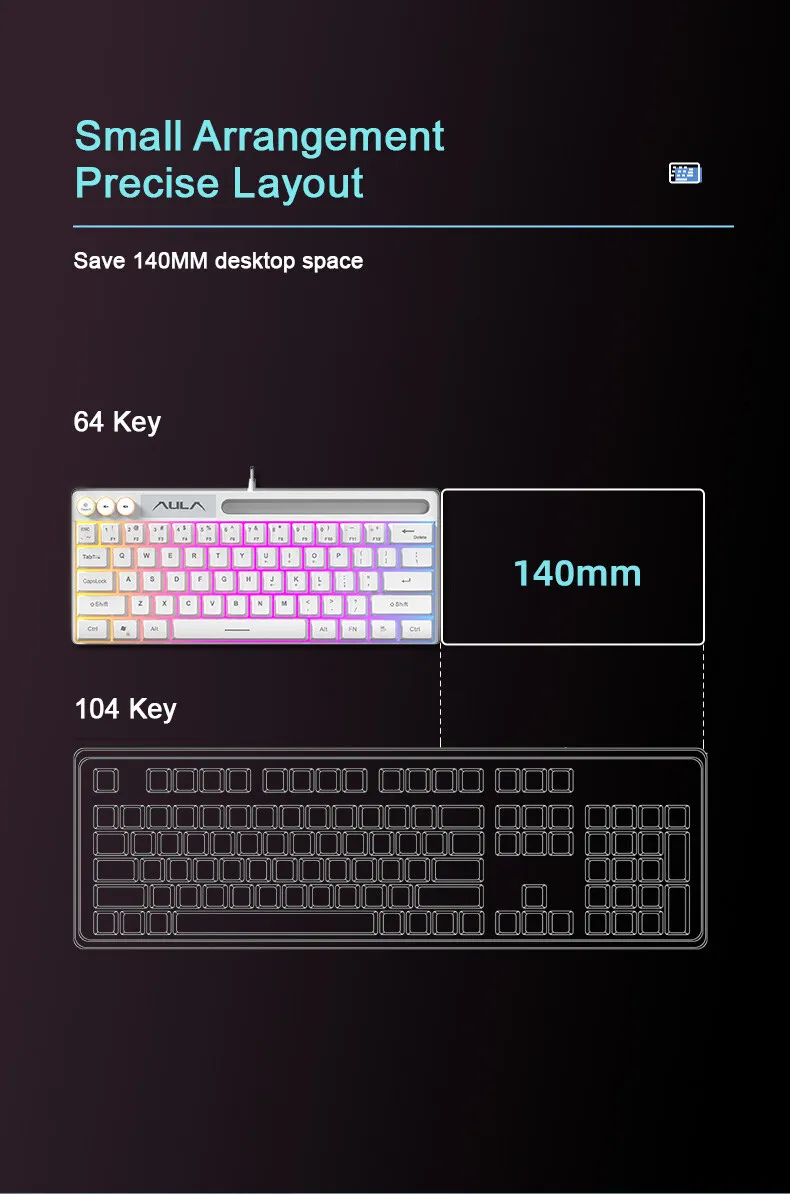 Comprar AULA-teclado para juegos F3061 RGB, teclado con cable de 64 teclas, interfaz USB para conexión de PC/ordenador portátil, ranura para teléfono, diseño que ahorra espacio