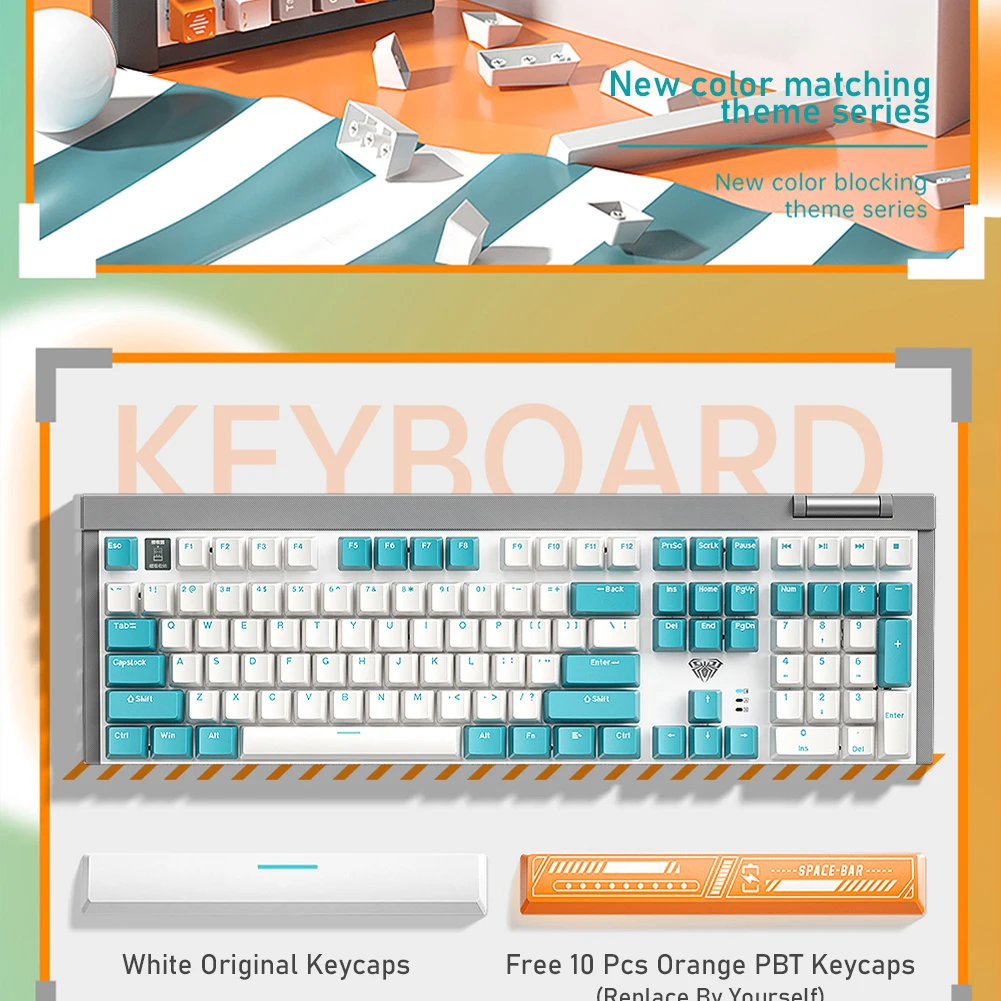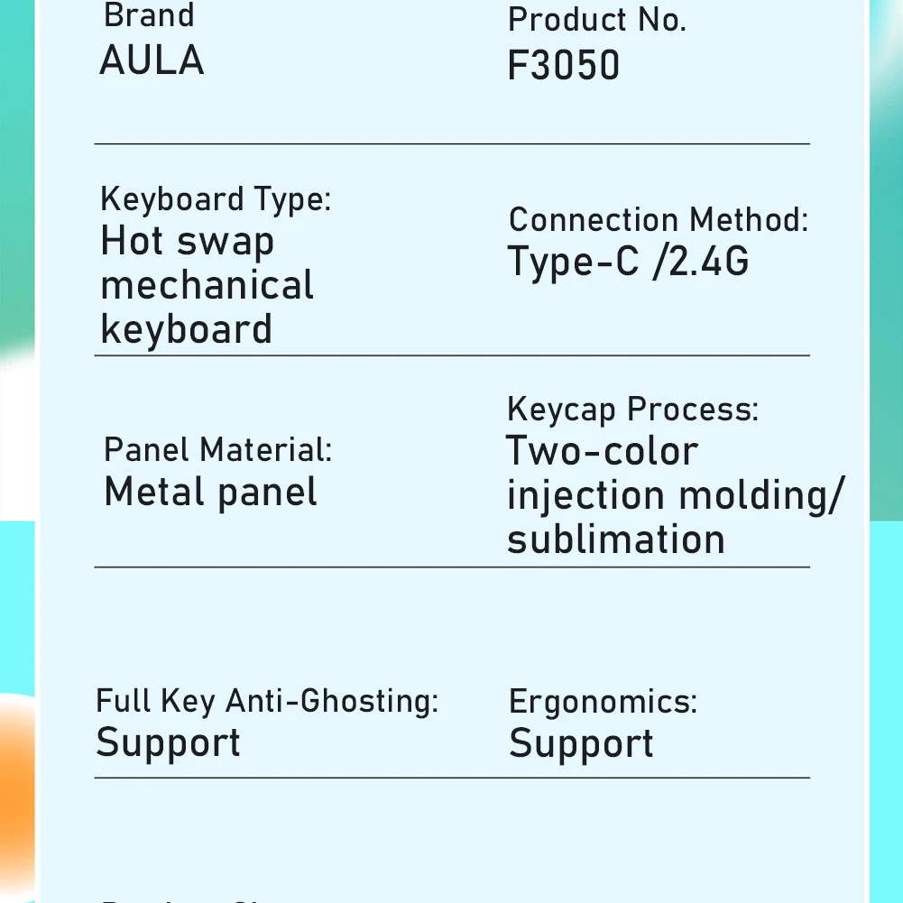 Comprar AULA-Teclado mecánico F3050 para jugadores de ordenador, dispositivo con cable, modo Dual, intercambiable en caliente, 2,4 teclas, luz fría, 10 teclas gratis