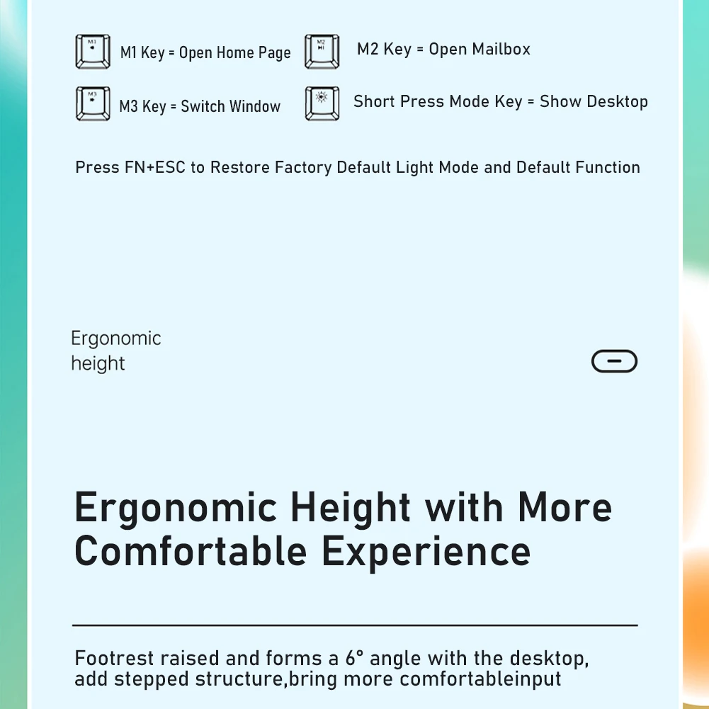 Altura ergonómica, ángulo de 6 ° con el escritorio, más cómodo