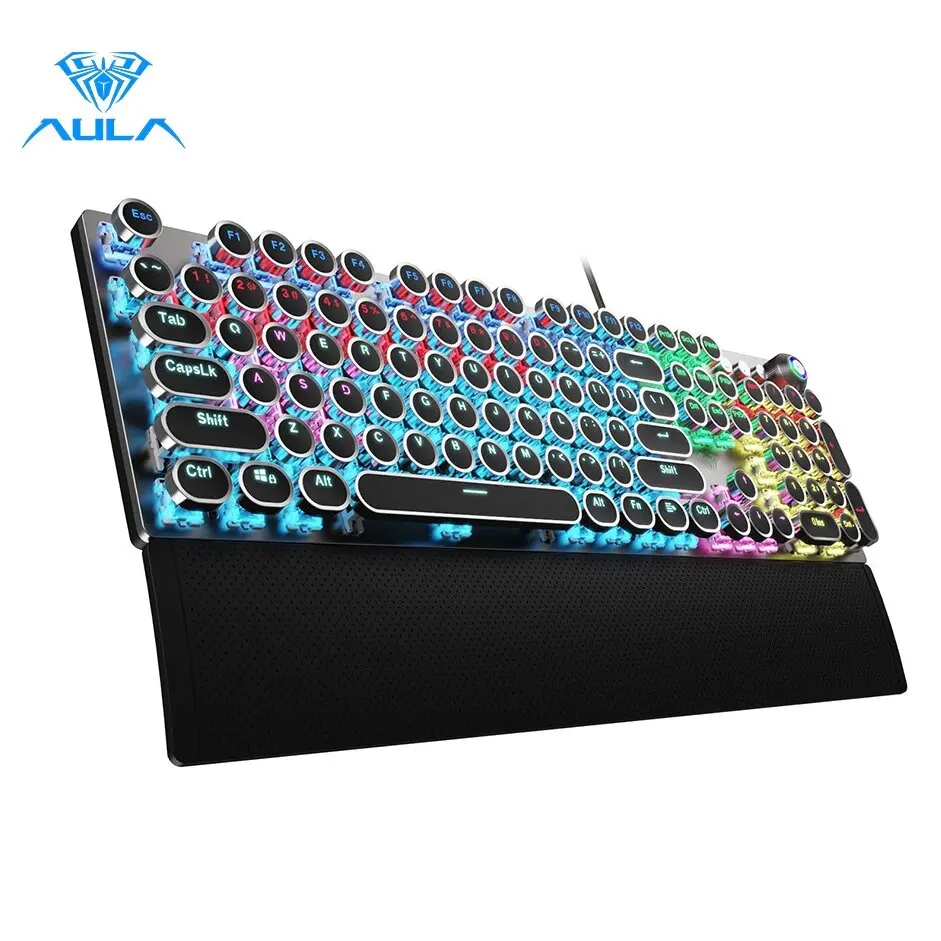 Comprar AULA-Teclado mecánico Retro Punk F2088, teclas redondas para juegos, PC, portátil, tableta, con cable, retroiluminado RGB, 104 teclas
