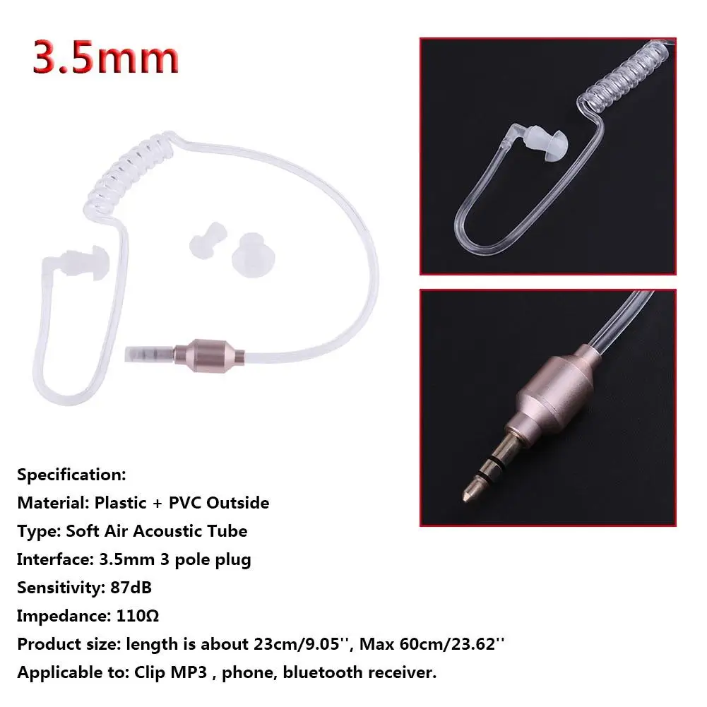 3.5mm In Ear Anti-radiation Earphone Air Tube Stereo Earphone Flexible Monaural Earphones