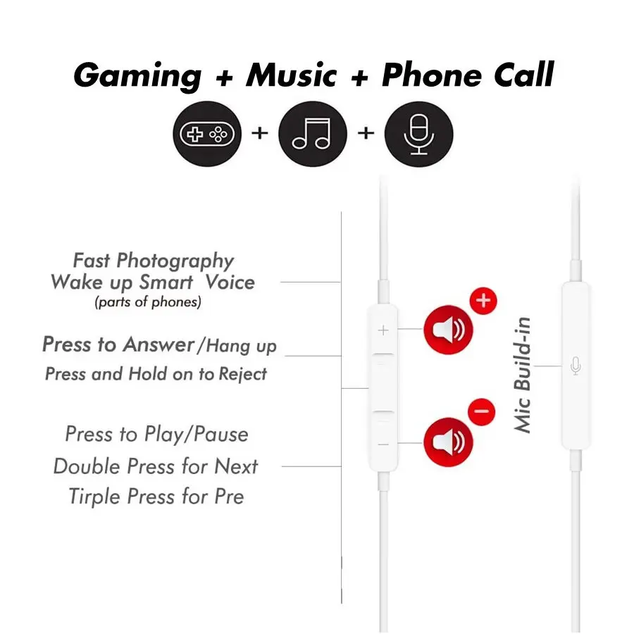 MIC DINÁMICO y CONTROL MULTIFUNCIÓN en línea: el micrófono dinámico de alta sensibilidad incorporado garantiza una llamada confiable, suave y clara. Un control en línea multifunción le permite llegar a su teléfono en segundos. Esas 3 teclas de acceso para cambiar de pista, Reproducir/Pausar, Volumen + / -, responder o rechazar llamadas.