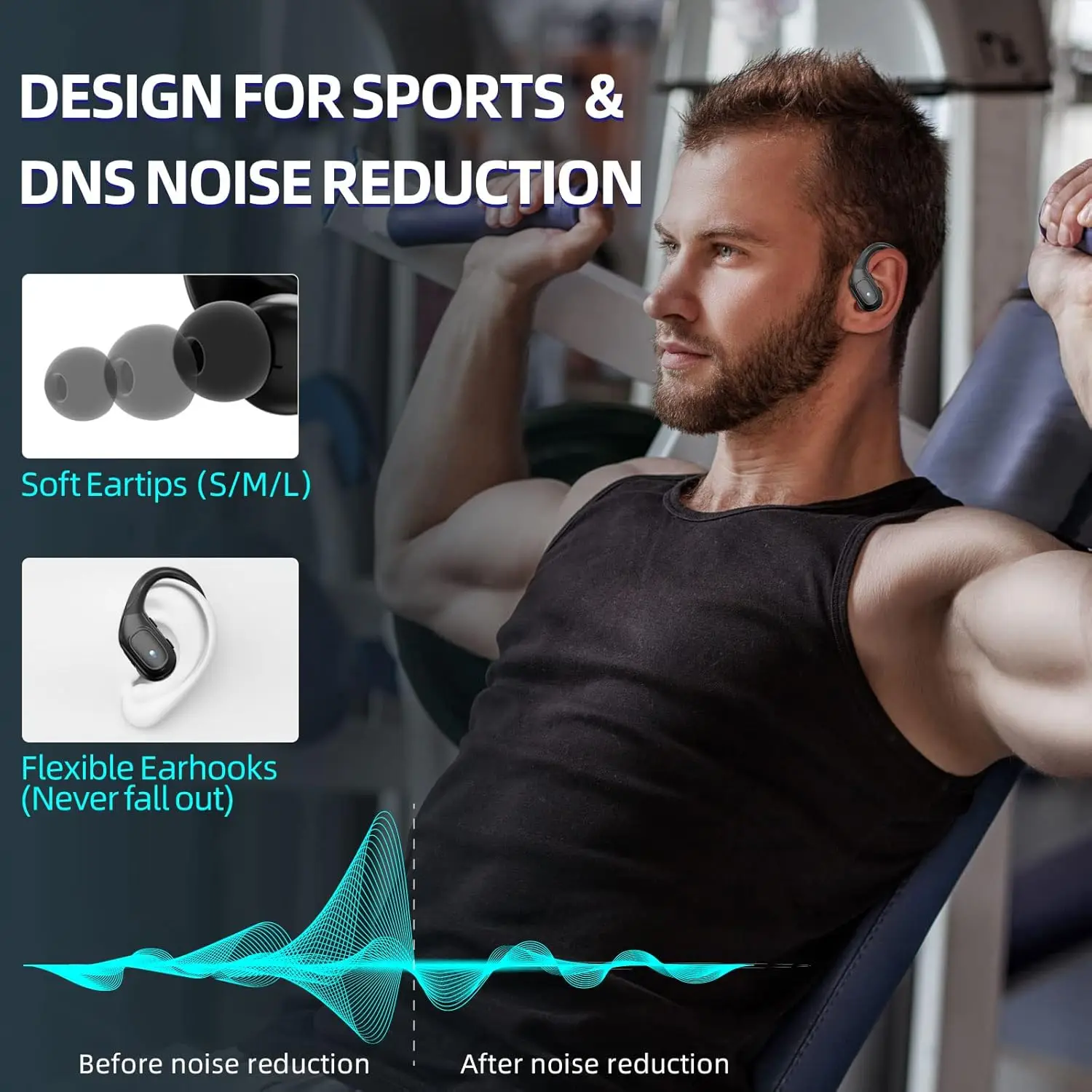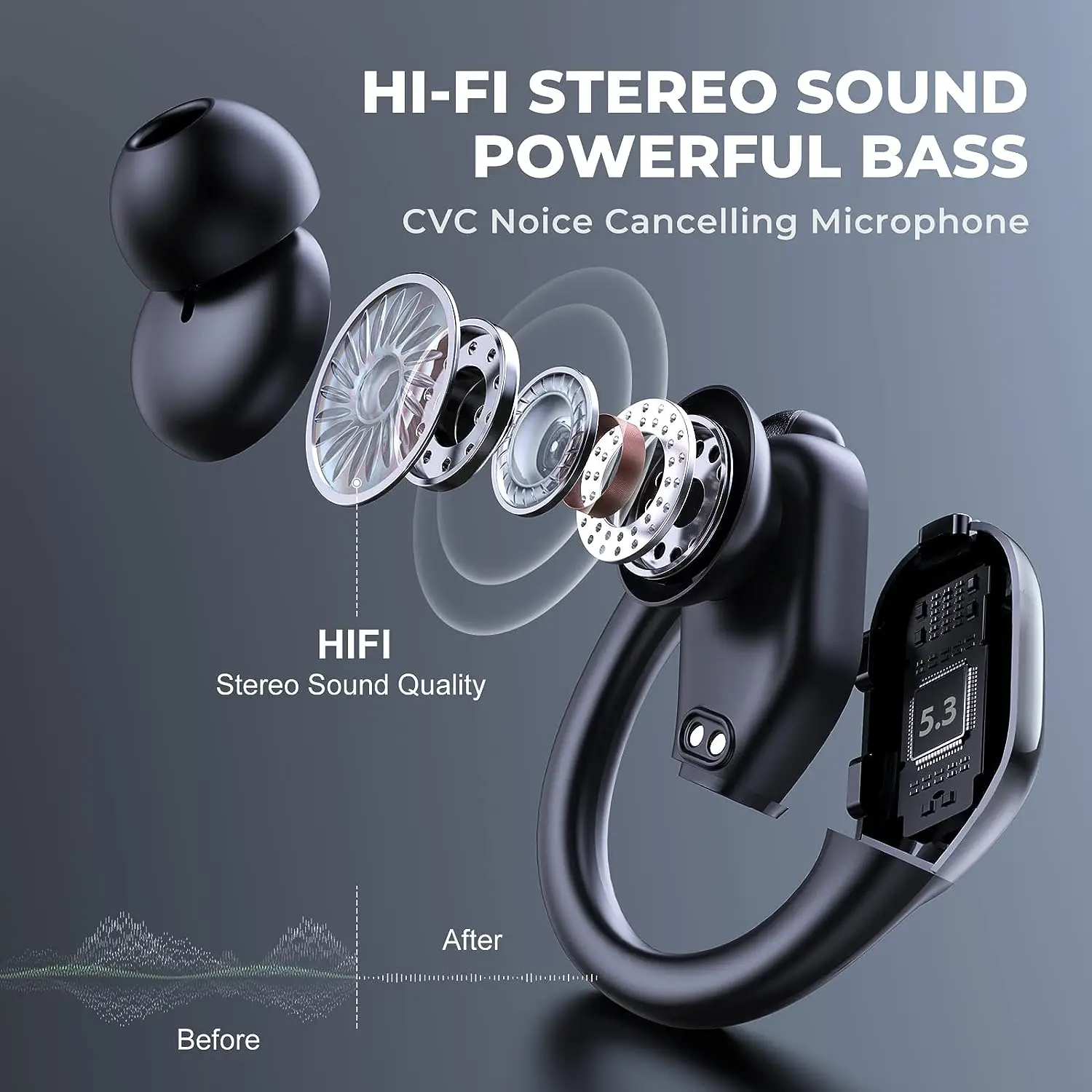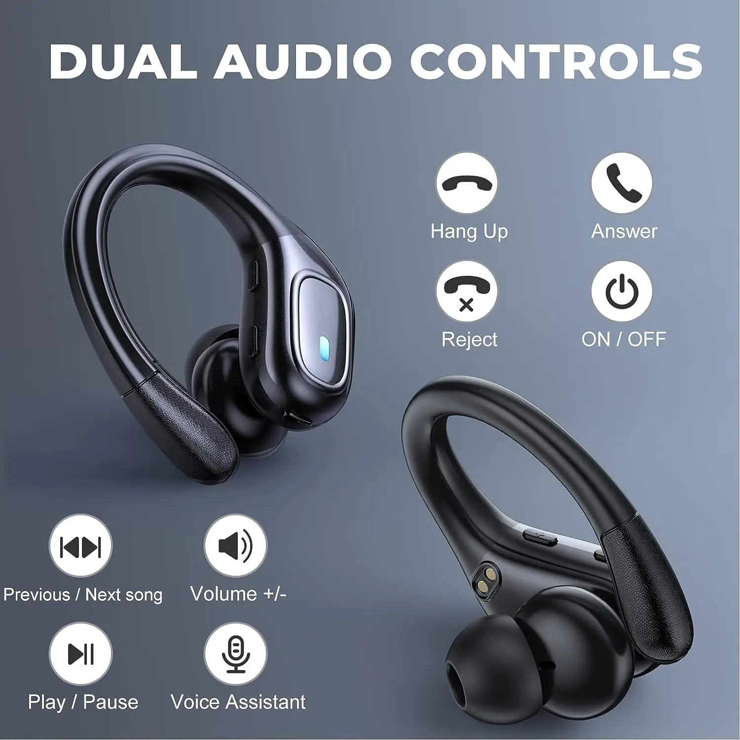 Comprar Auriculares Bluetooth 5,3 con gancho para la oreja, inalámbricos TWS, estéreo HiFi, resistentes al agua, pantalla LED, botón de Larga modo de reposo