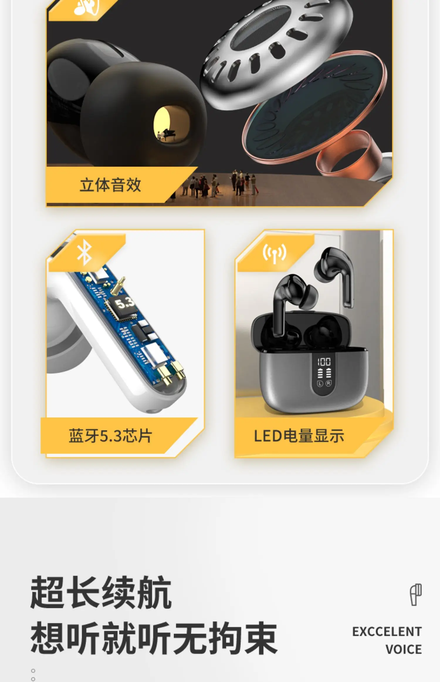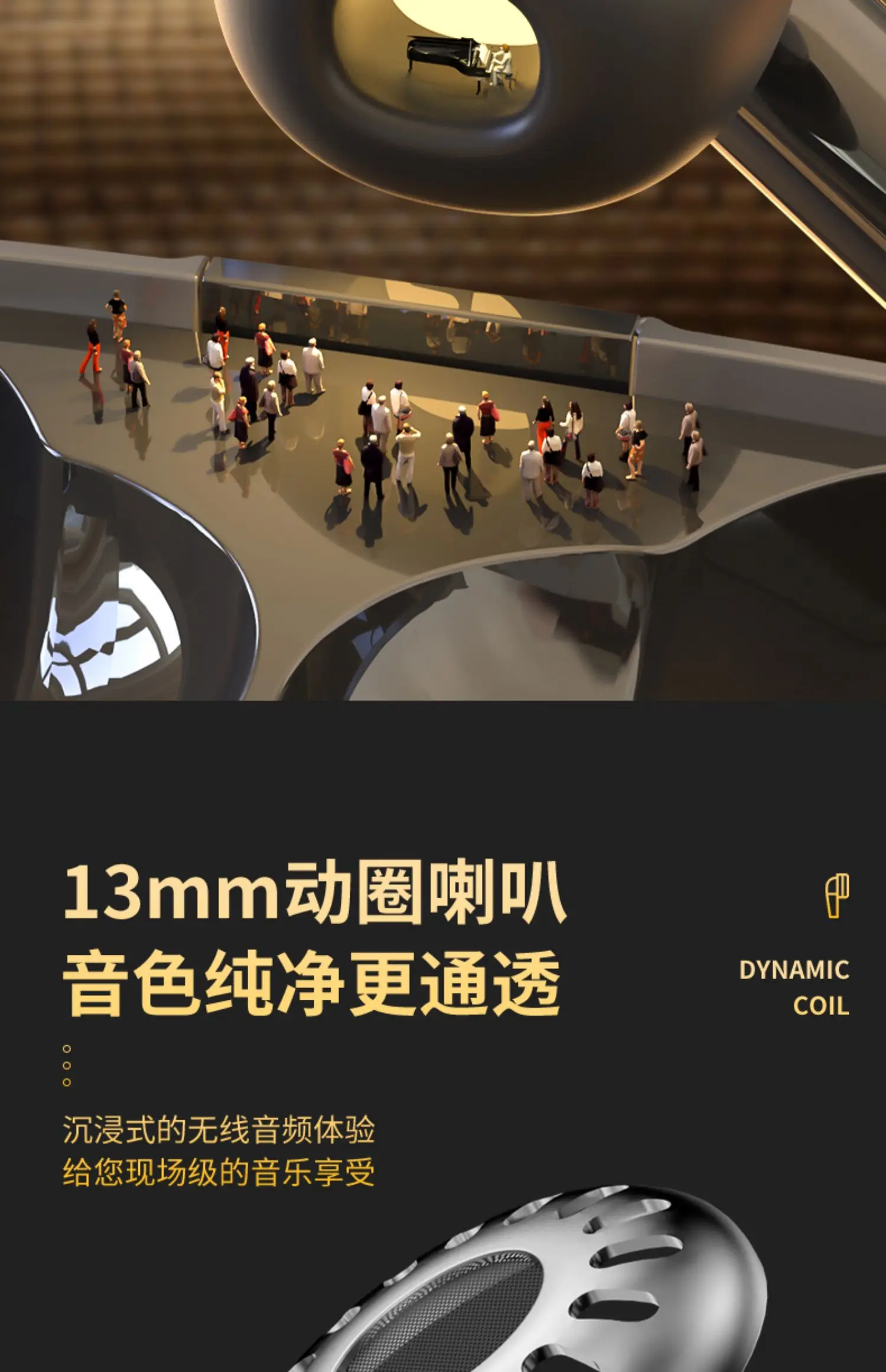 3.El altavoz dinámico de 13 mm tiene un sonido puro y transparente, lo que brinda una experiencia de audio inalámbrica inmersiva y le ofrece disfrutar de la música en vivo.