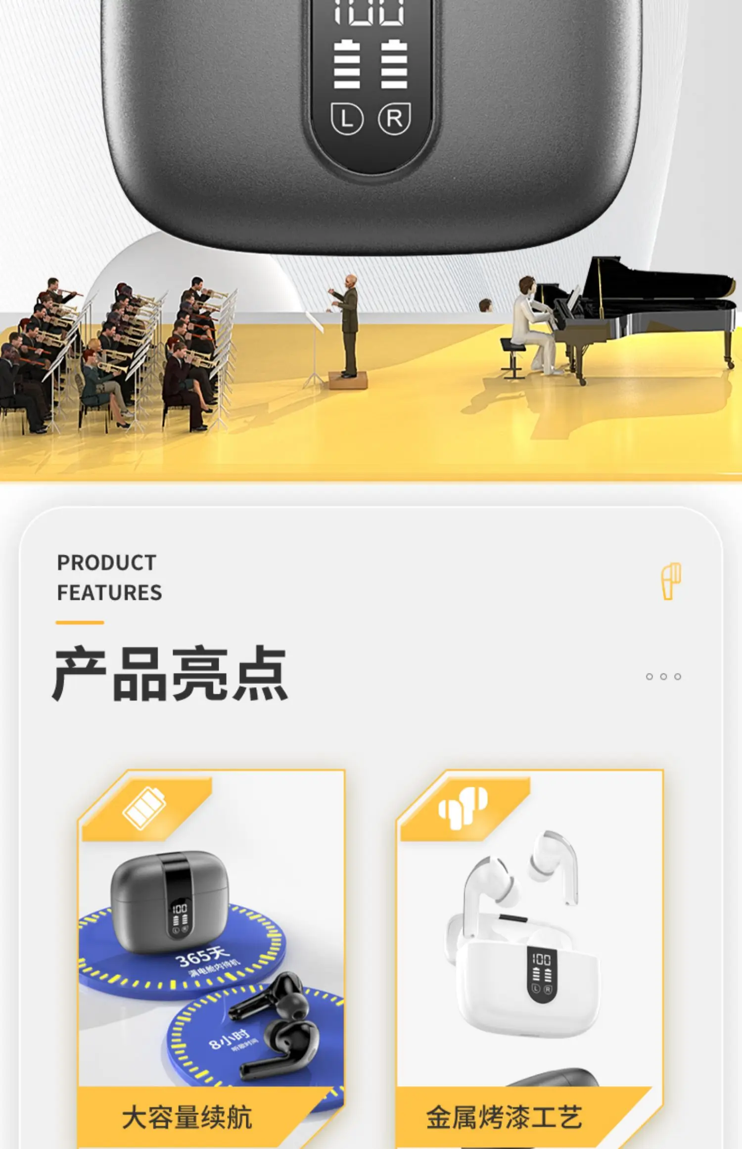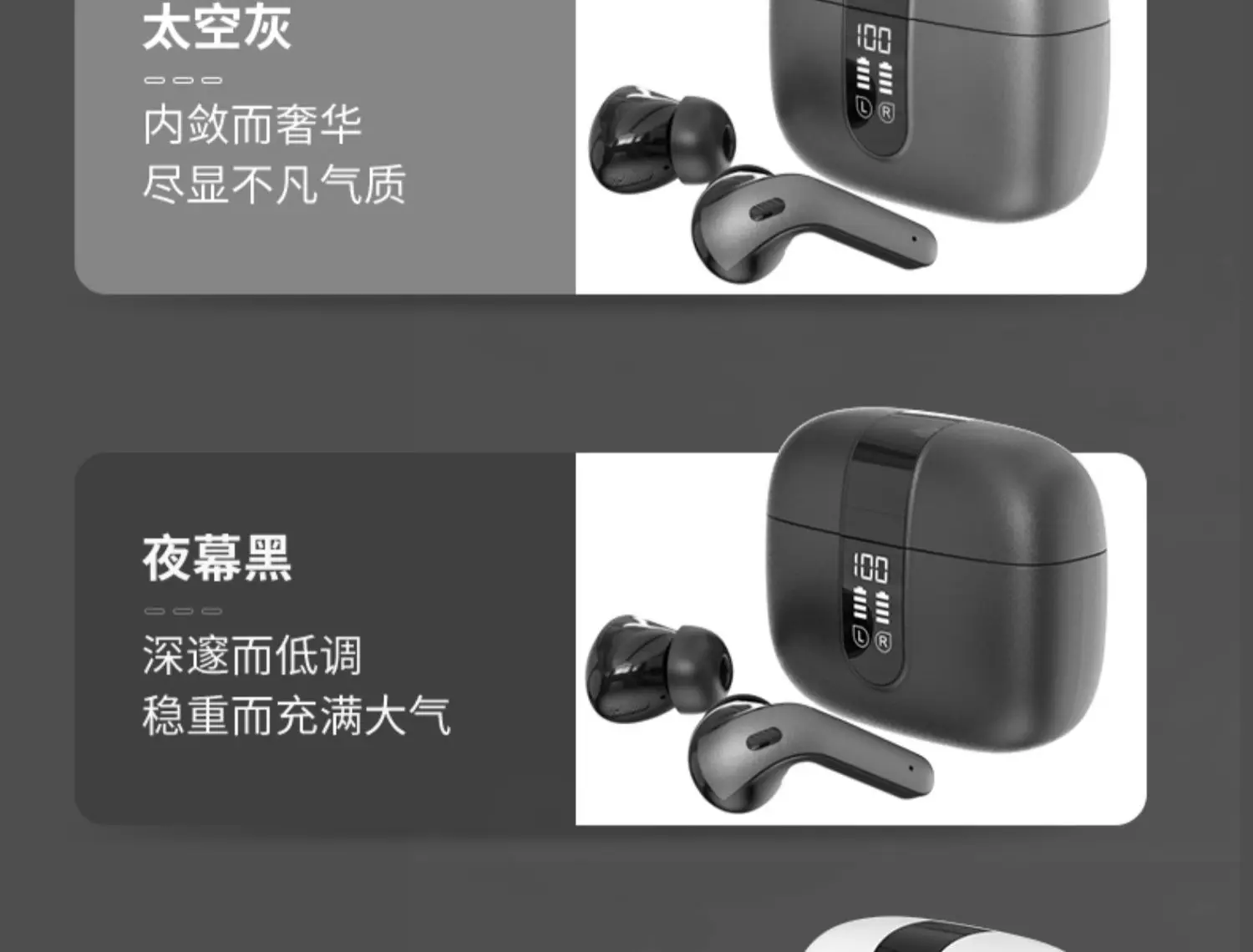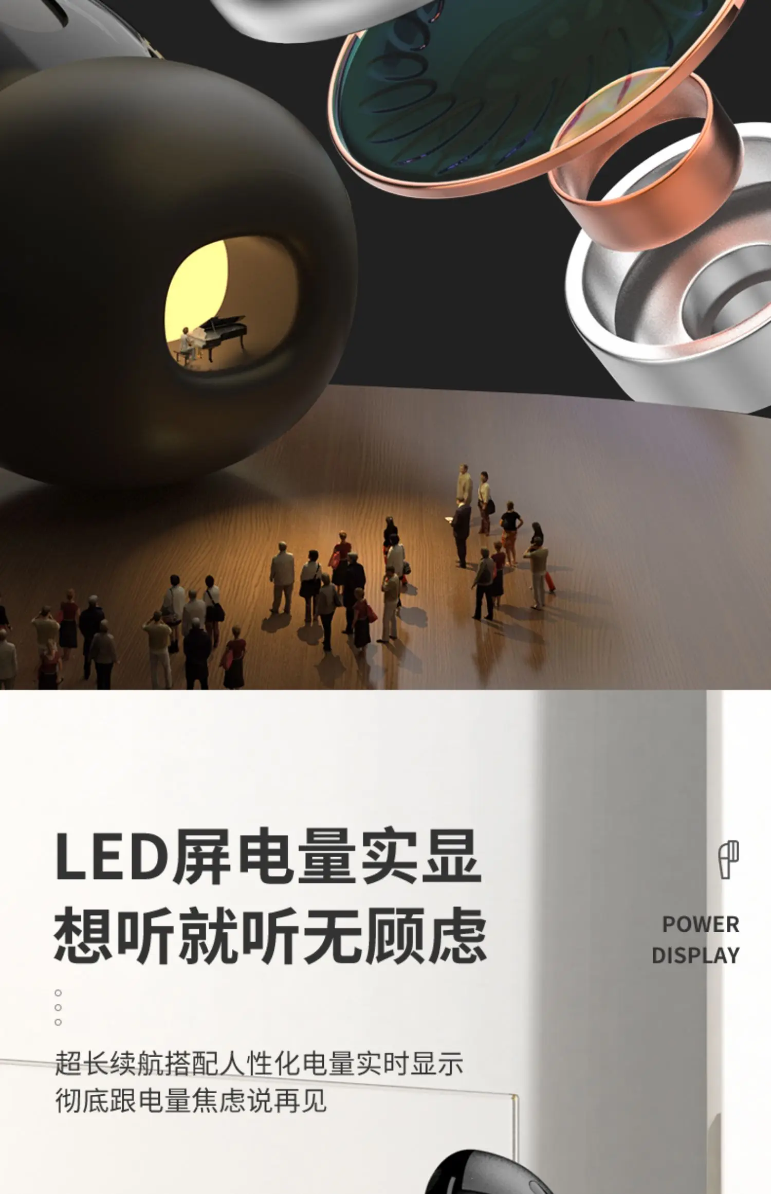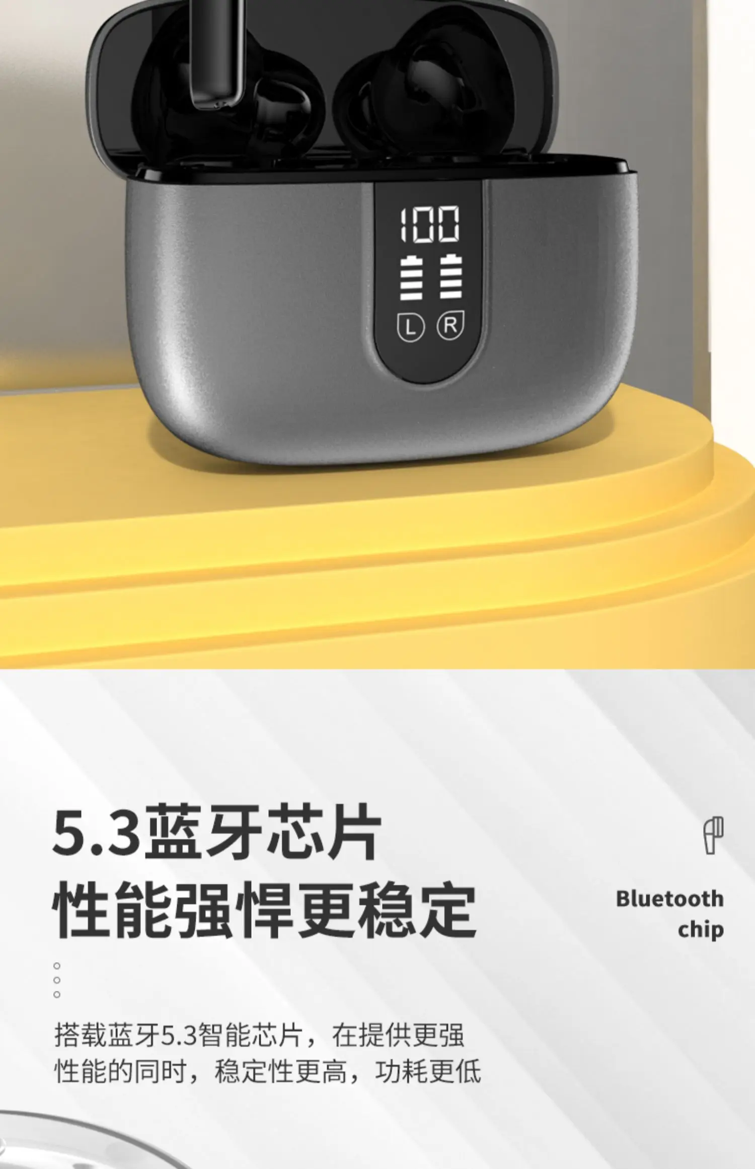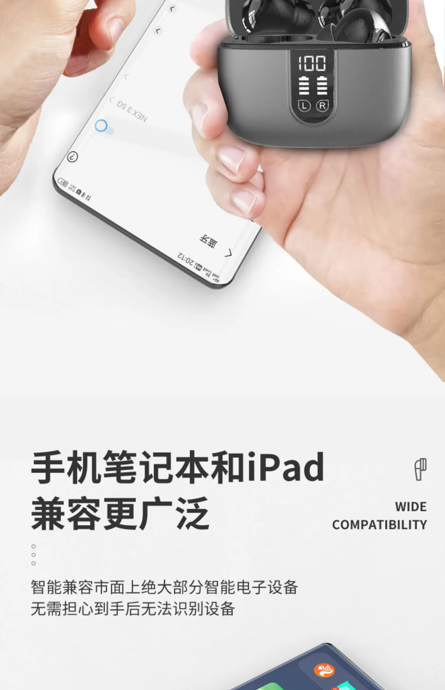 4.La pantalla LED de la batería le permite escuchar sin preocupaciones, con una duración de batería ultralarga y una visualización humanizada de la batería en tiempo real, diciendo completamente adiós a la ansiedad de la batería.