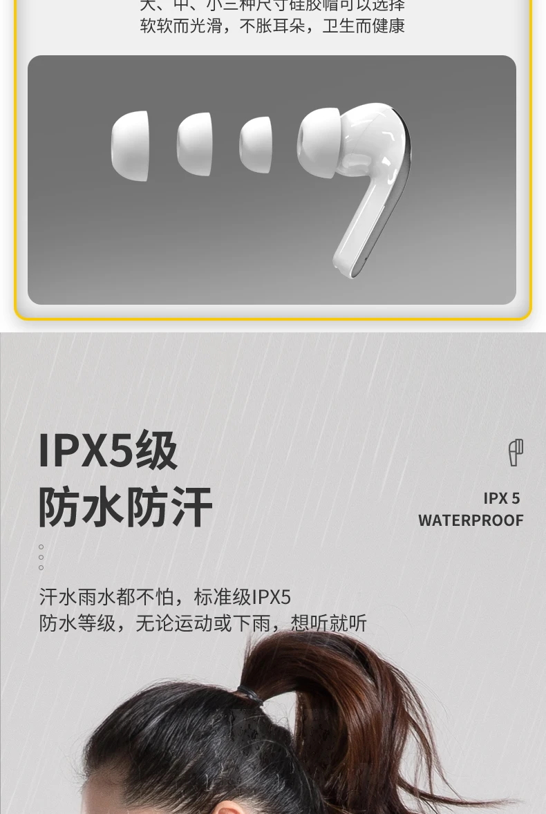Clasificación IPX5, resistente al agua y al sudor, sin miedo al sudor ni a la lluvia, clasificación IPX5 estándar, nivel de impermeabilidad, ya sea deporte o lluvia, escuche si lo desea