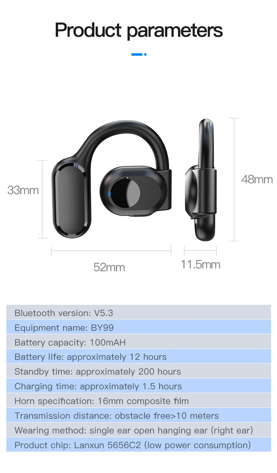 ♬ Diseño ergonómico y liviano, los auriculares Bluetooth pesan solo 9 gramos, lo que los hace cómodos y sin estrés.