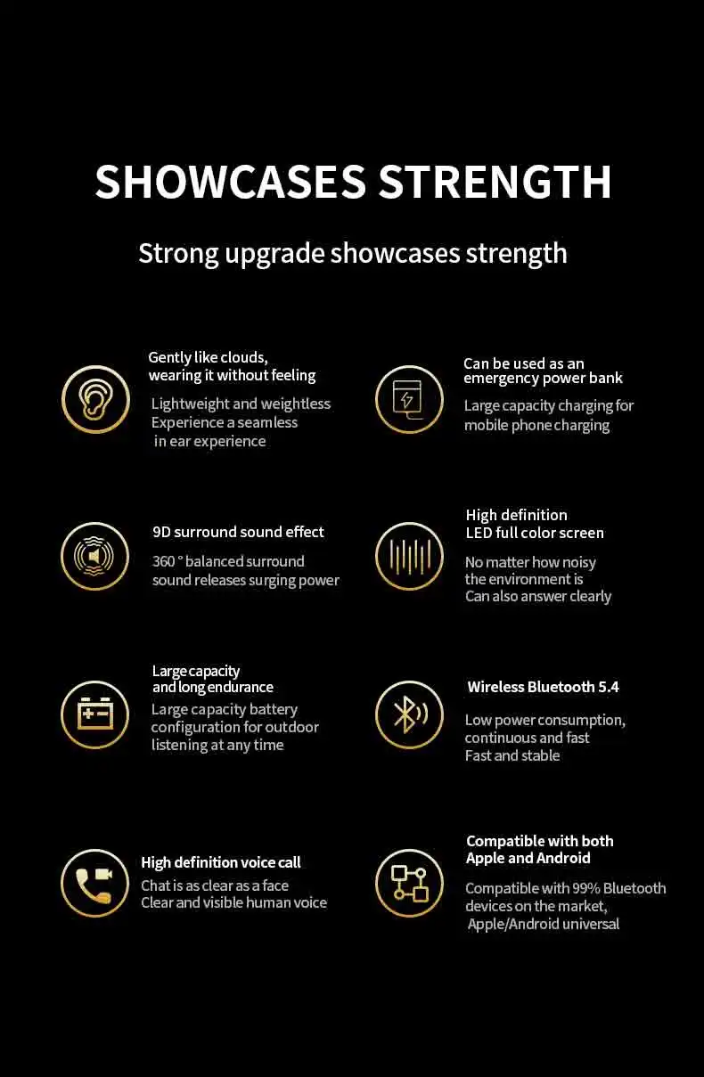 ☛Panel de control integrado: la pantalla del estuche de carga sirve como panel de control integrado para sus auriculares y dispositivos asociados, lo que le permite controlar diversas funciones como volumen y fotografía directamente desde la pantalla.