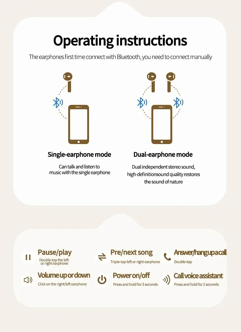 Verdaderos auriculares inalámbricos Bluetooth|Sonido 3D|Cómodo de llevar