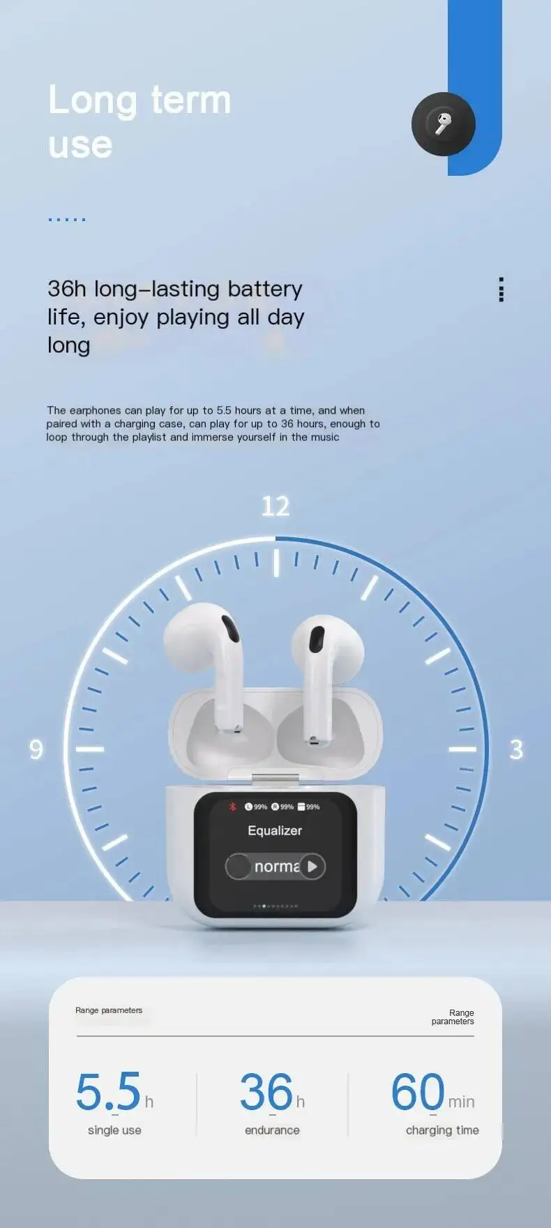 Comprar Auriculares Bluetooth 5,3 con gancho para la oreja, pantalla de alimentación, peso ligero, batería recargable de larga duración, auriculares universales izquierdo y derecho