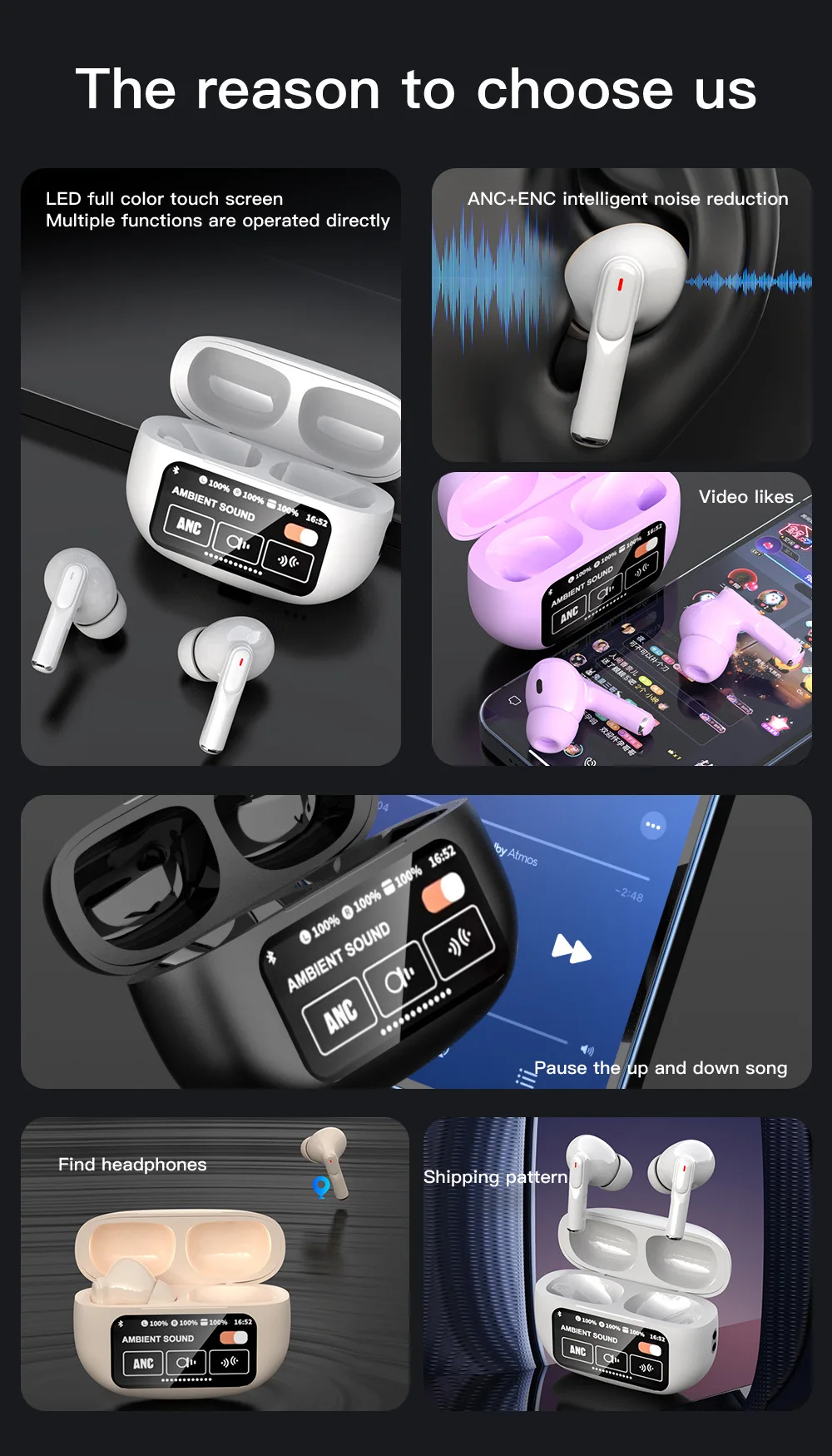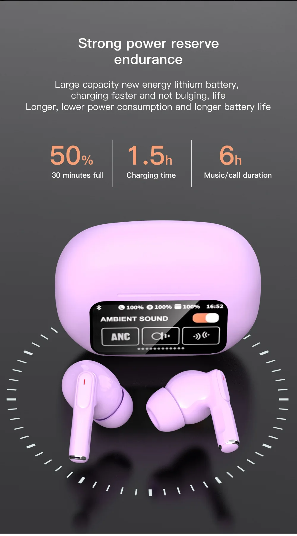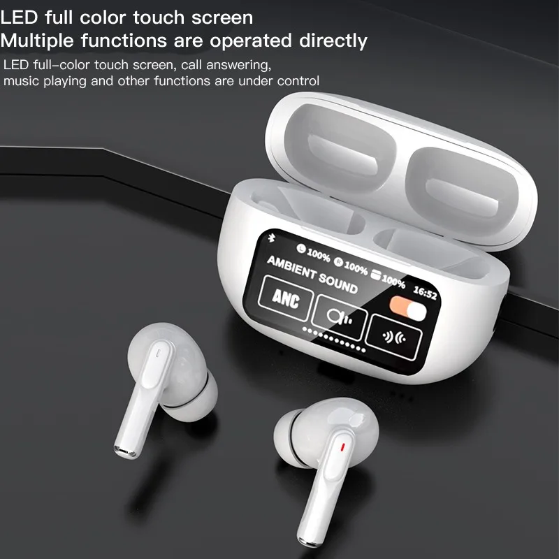 Comprar Auriculares Bluetooth A9pro con pantalla a Color, Control táctil, cancelación de ruido ANC, batería de larga duración para viajes, deportes y trabajo