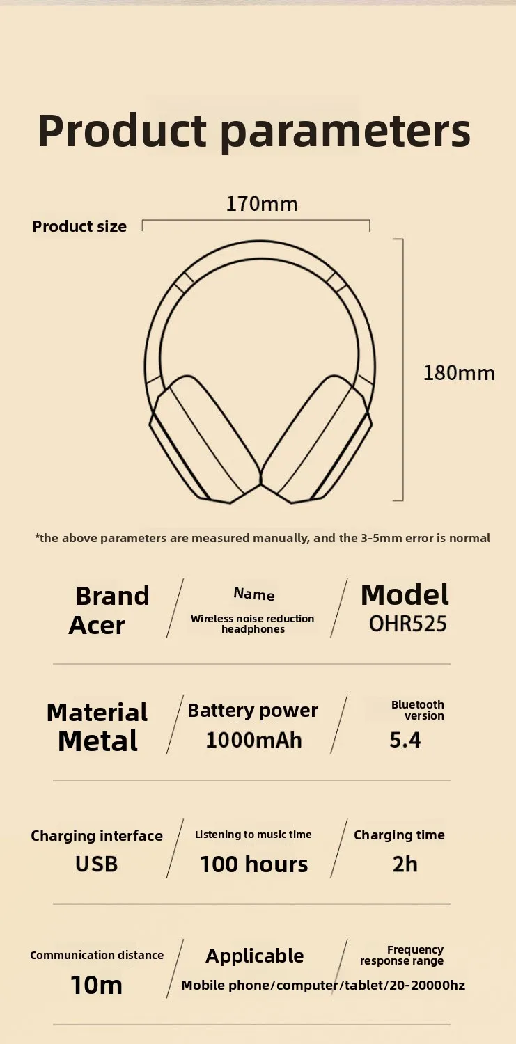 Nombre del producto: Auriculares inalámbricos Bluetooth Acer OHR525 ANC
