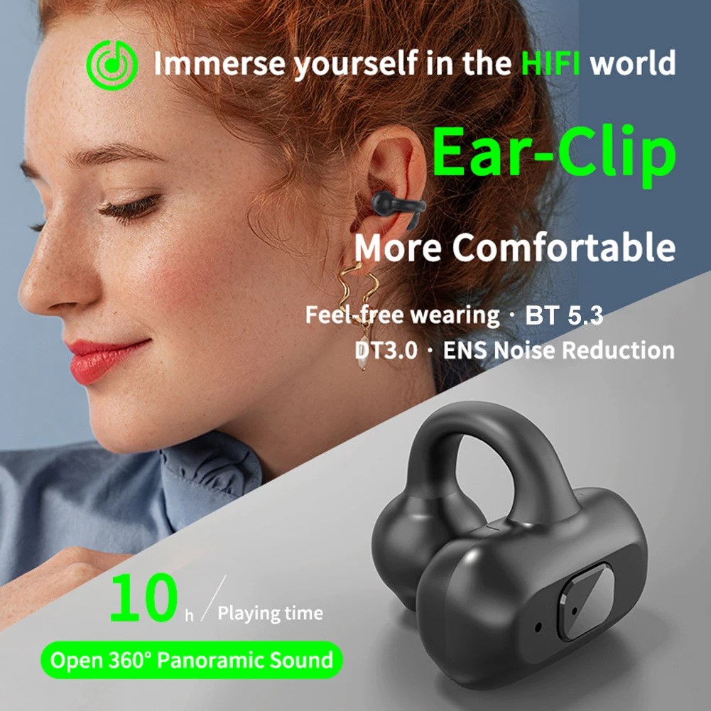 Comprar Auriculares Bluetooth de conducción ósea, cascos inalámbricos con Clip para la oreja abierta, HiFi estéreo, reducción de ruido, Auriculares deportivos con micrófono