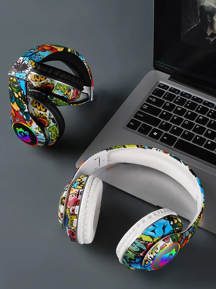 Comprar Auriculares Bluetooth Graffiti inalámbricos con luz LED juego Doodle auriculares inalámbricos con micrófono para niños niño niña regalo soporte tarjeta TF