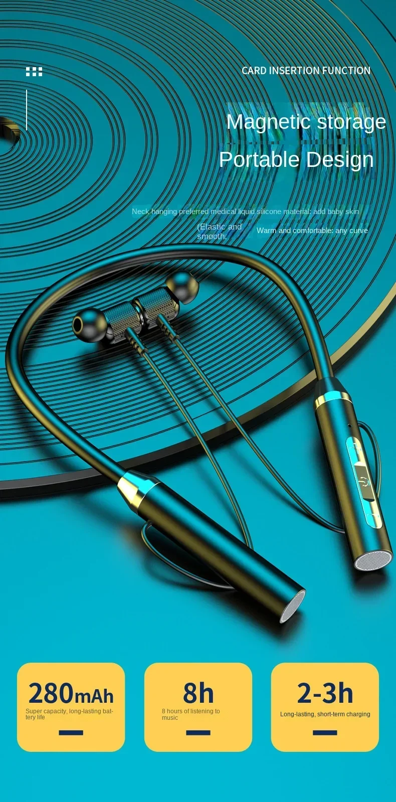 Headset Large Capacity Battery Magnetic Storage Wireless Bluetooth Neck In-ear Earphones for Sports