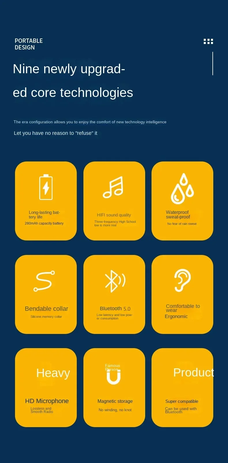 • Magnetic Sport Neckband :The magnetic sport neckband design allows for easy adjustment and secure fit, perfect for workouts or active lifestyles.