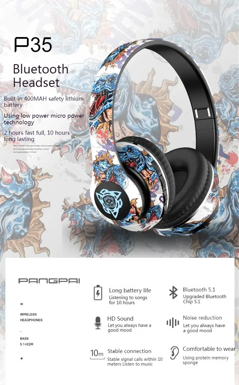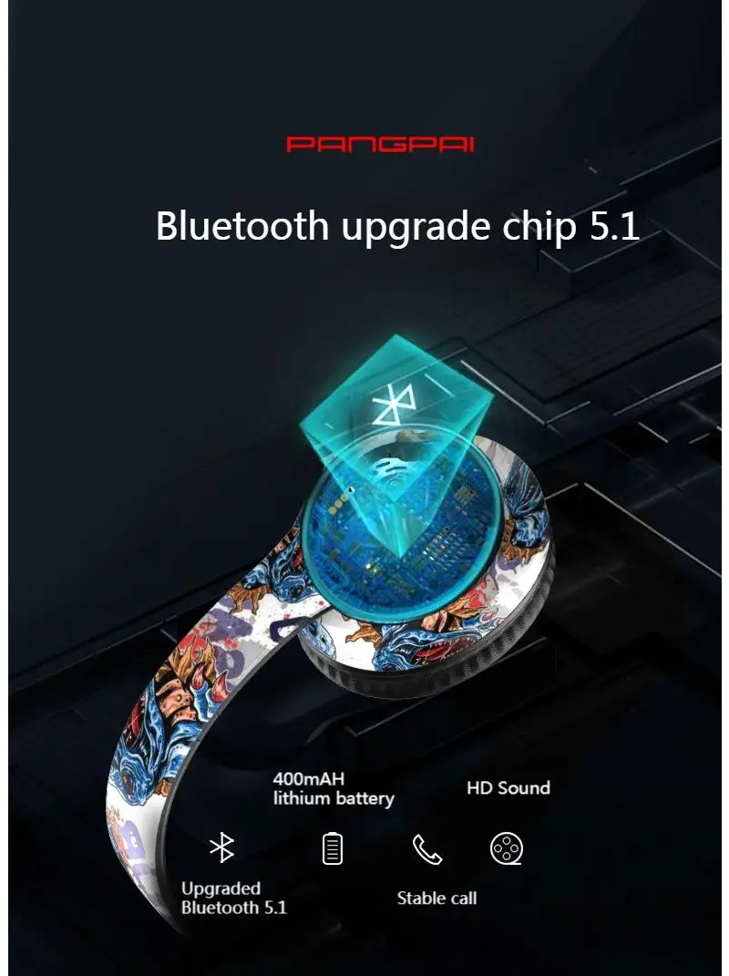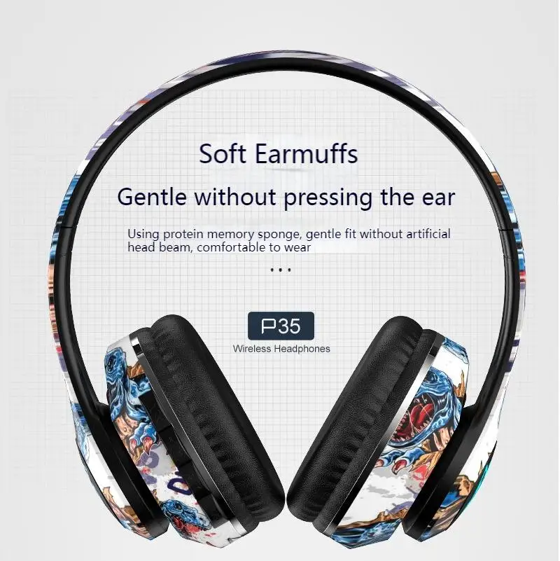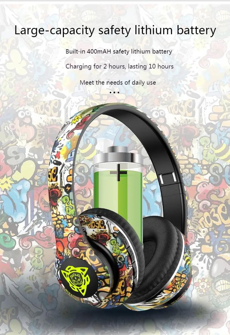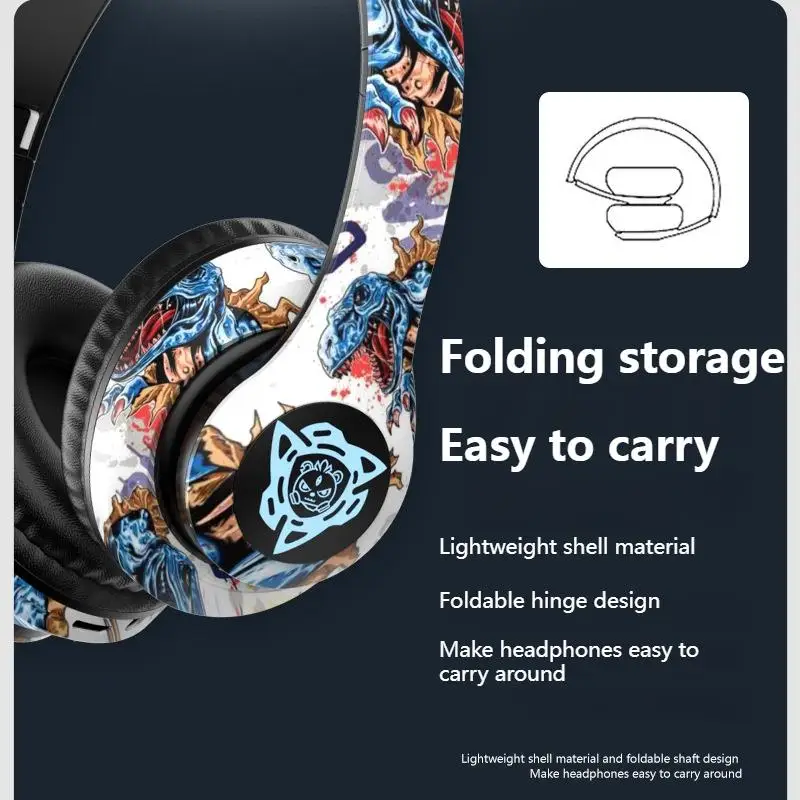 Auriculares Bluetooth inalámbricos plegables con grafiti LED, auriculares con cancelación de ruido, auriculares para jugadores, compatible con TF con micrófono HD