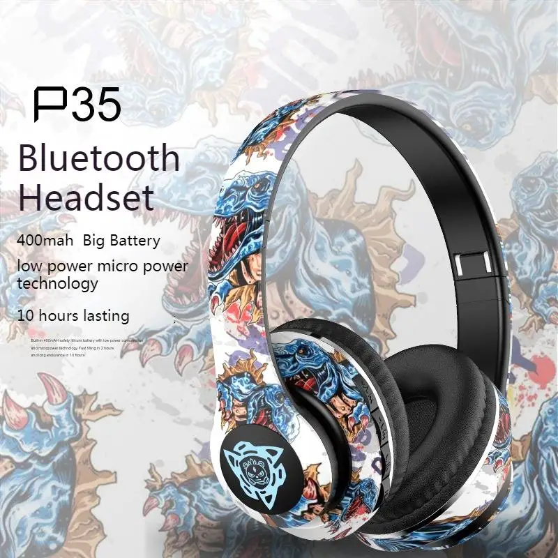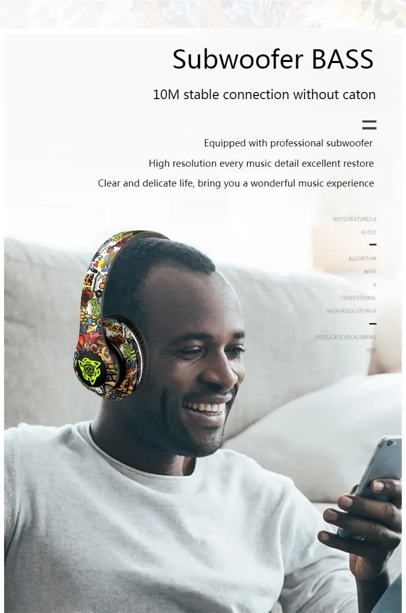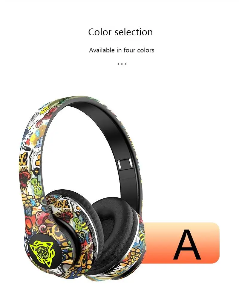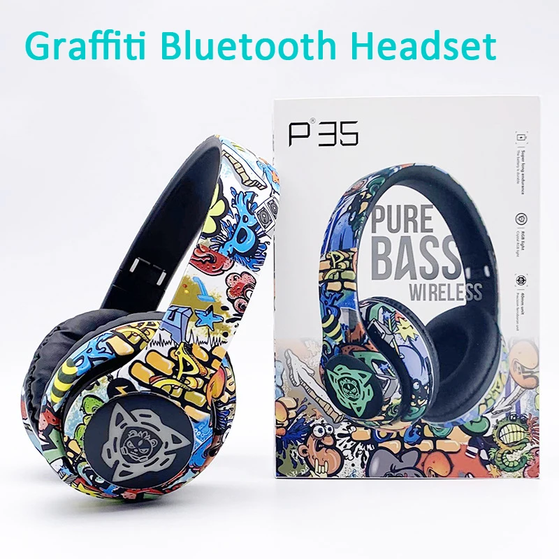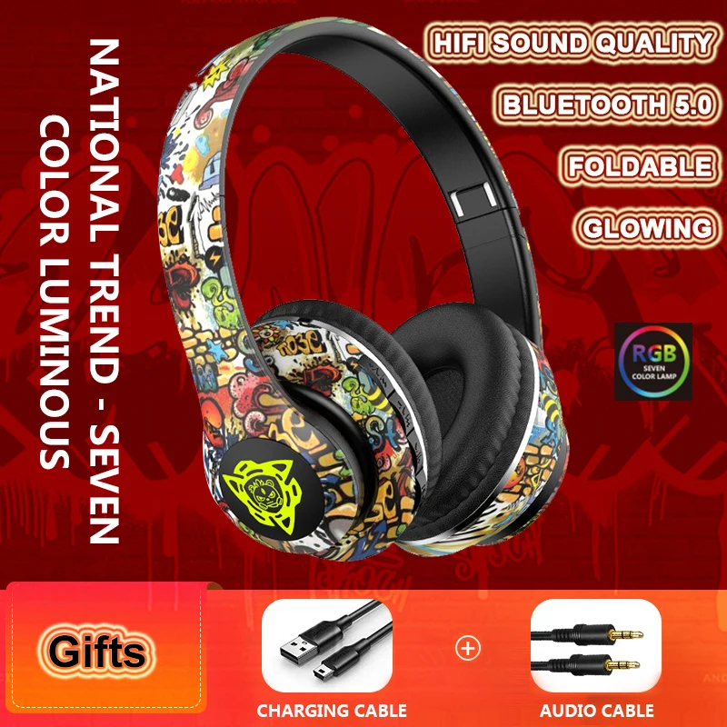 Comprar Auriculares Bluetooth inalámbricos plegables con grafiti LED, auriculares supergraves con cancelación de ruido, auriculares para jugadores, compatibles con TF con micrófono HD