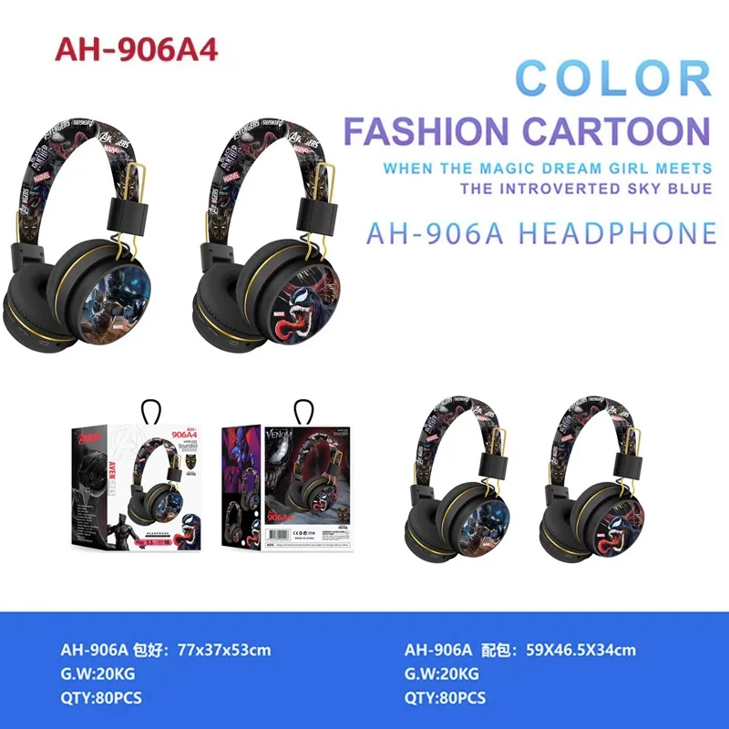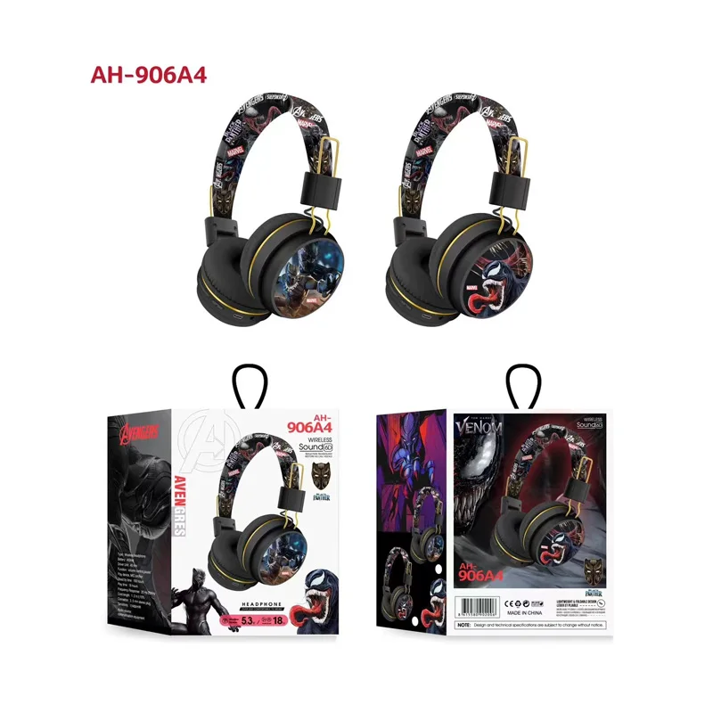 Auriculares Bluetooth Marvel AH-906A4 Black Panther, auriculares inalámbricos con Bluetooth, auriculares con sonido envolvente HIFI, dibujos animados de Anime para niños