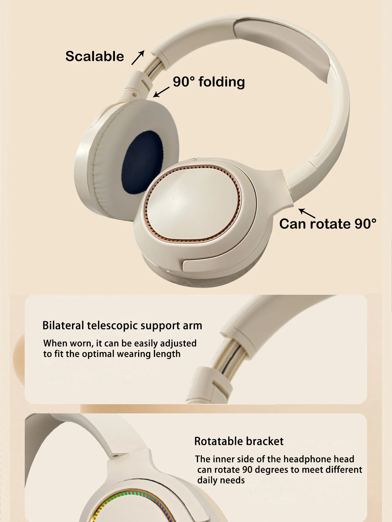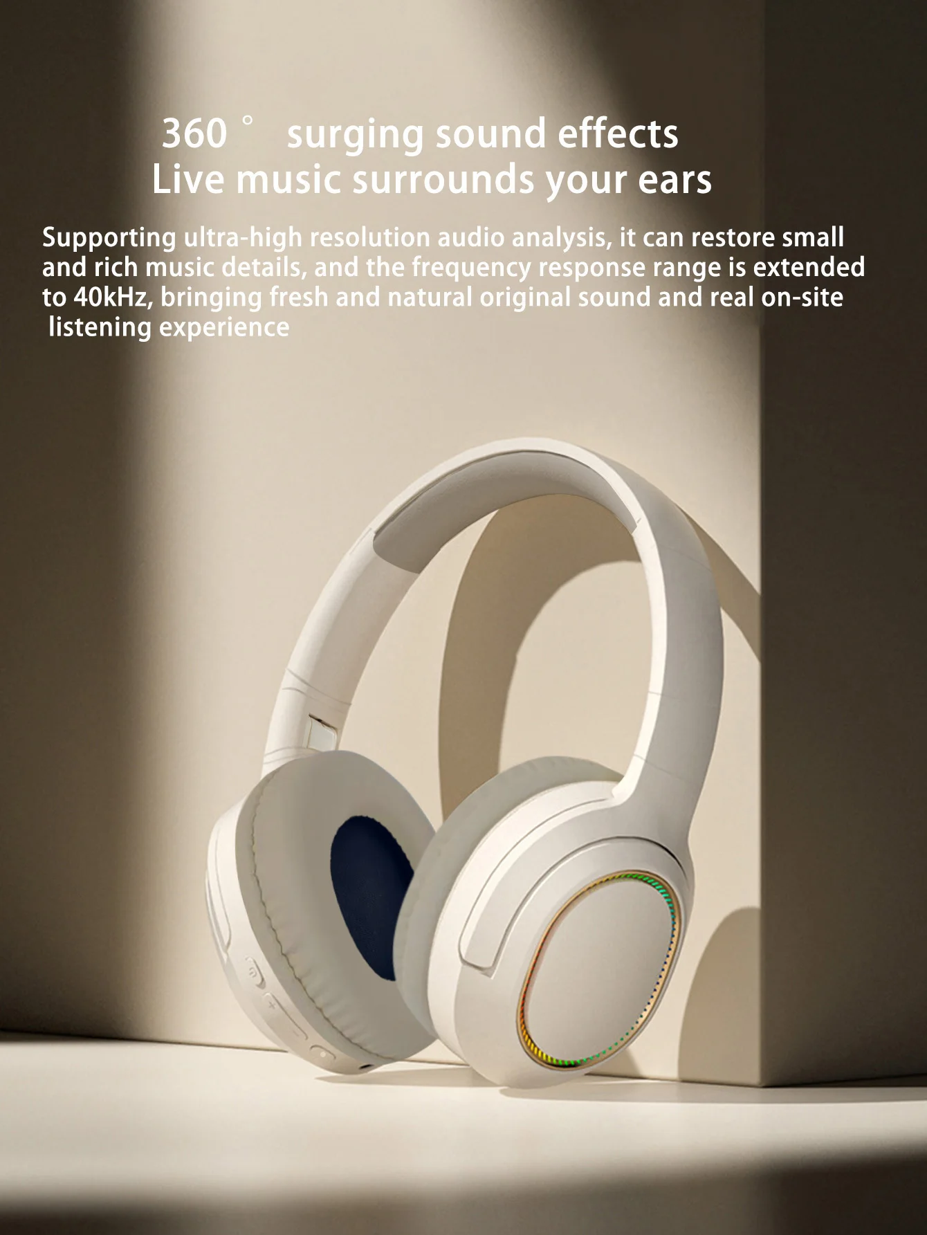 Auriculares Bluetooth sobre la oreja plegables, luces RGB geniales, batería de larga duración, almohadillas suaves para los oídos que no presionan en los oídos