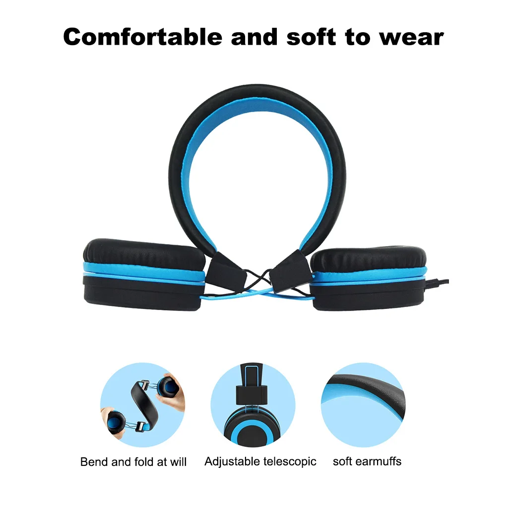 Cómodo de usar: con orejeras suaves, este auricular para niños puede ofrecer una buena experiencia de uso y es bueno para un uso prolongado.Seguro de usar: estos auriculares de 3,5mm para niños están diseñados con una función de límite de volumen, el volumen no excederá los 94dB, lo que puede proteger la audición de un niño.Se adapta a ocasiones: estos auriculares con cable son adecuados para juegos, estudios, cursos en línea, escuchar música, etc.Ajustable: este auricular con cable para niños tiene una DIADEMA que se puede ajustar libremente para satisfacer sus diferentes necesidades y es fácil de ajustar.Control de Línea: Este auricular con cable de 3,5mm le permite reproducir o pausar música, ajustar el volumen y cambiar canciones, fácil de operar.Especificación:Tamaño del altavoz: bobina móvil, 40mm.Rango de respuesta de frecuencia: 20-20Khz.Sensibilidad: 98 ± 3dB.Impedancia: 32Ω.Conector: 3,5mm, codo.Color: azul negro, azul verde, azul, rosa.Tamaño: se muestra como en la imagen.Nota:Puede haber un poco de distorsión de color debido a las diferentes resoluciones del ordenador.Puede haber pequeños errores debido a diferentes mediciones manuales.El paquete incluye1 unidad de auriculares para niños (con 1 manual de usuario).
