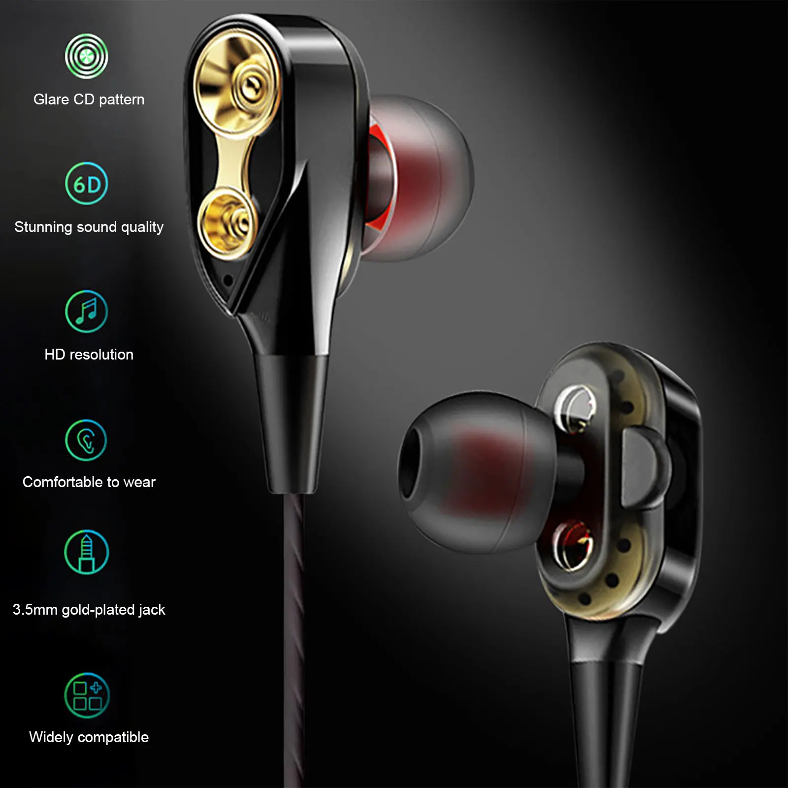 Comprar Auriculares con cable de 3,5mm, auriculares estéreo HiFi con reducción de ruido, Auriculares deportivos con micrófono para iPhone, Xiaomi, Huawei y Samsung