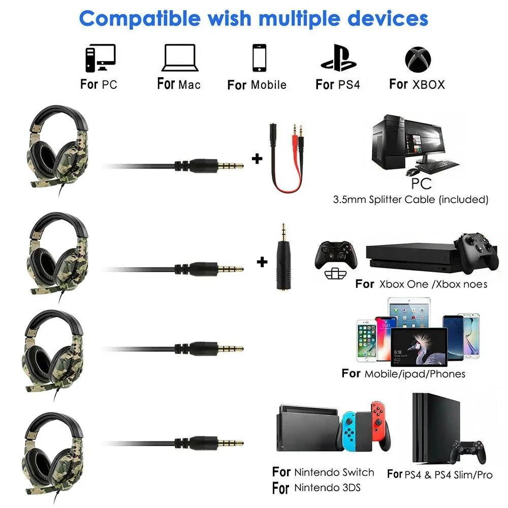 Comprar Auriculares con cable de 3,5mm para videojuegos, cascos con micrófono para PS4, PS5, Xbox, graves, estéreo, PC, ordenador de alta calidad, regalos