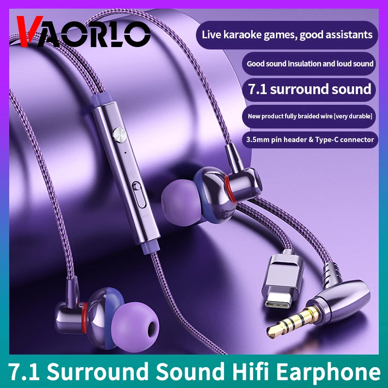 Comprar Auriculares con cable de alta fidelidad con sonido envolvente 7,1, AUX y tipo C de 3,5mm con micrófono HD IPX7, resistentes al agua, deportivos, para videojuegos, transmisión de música