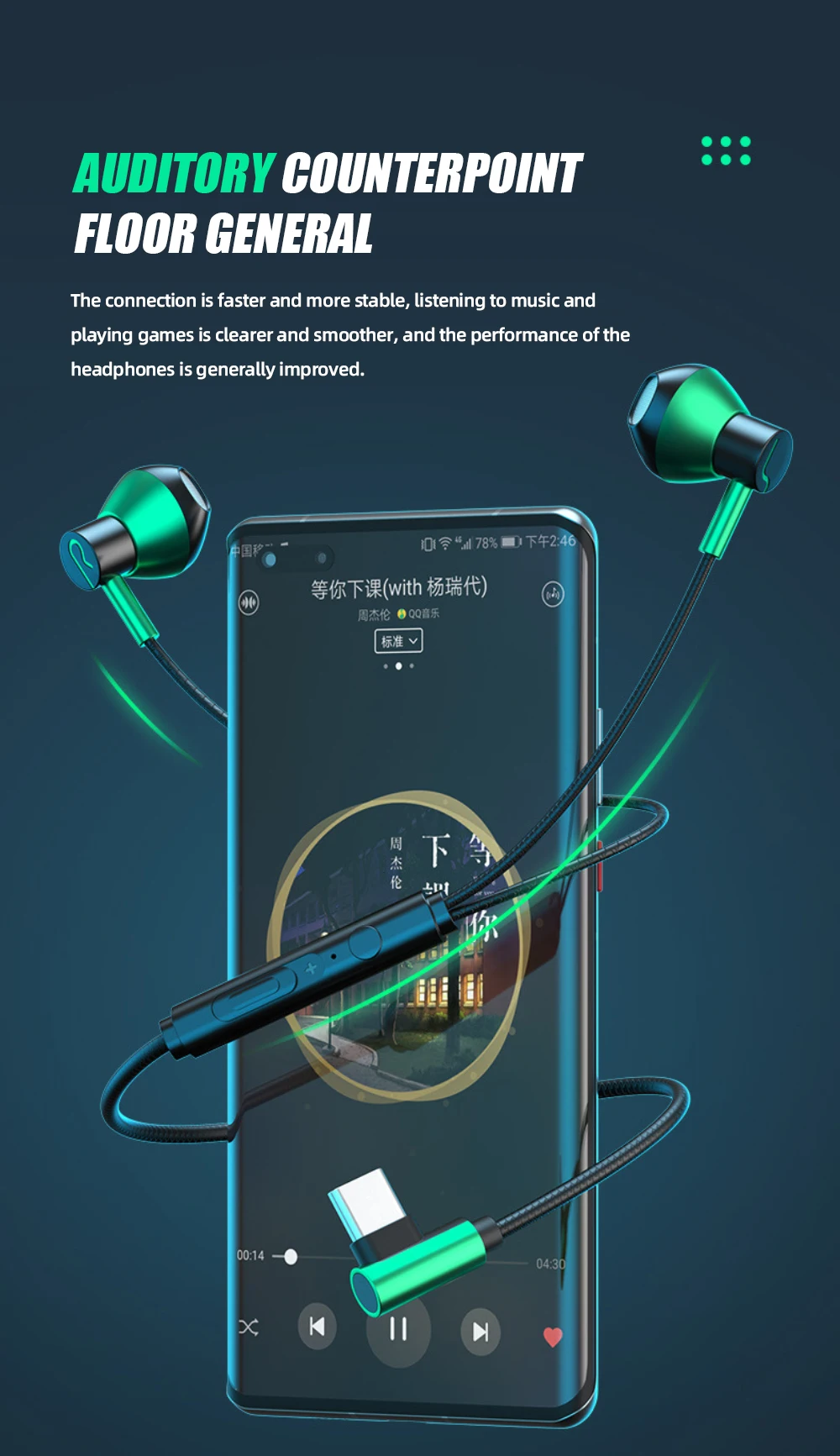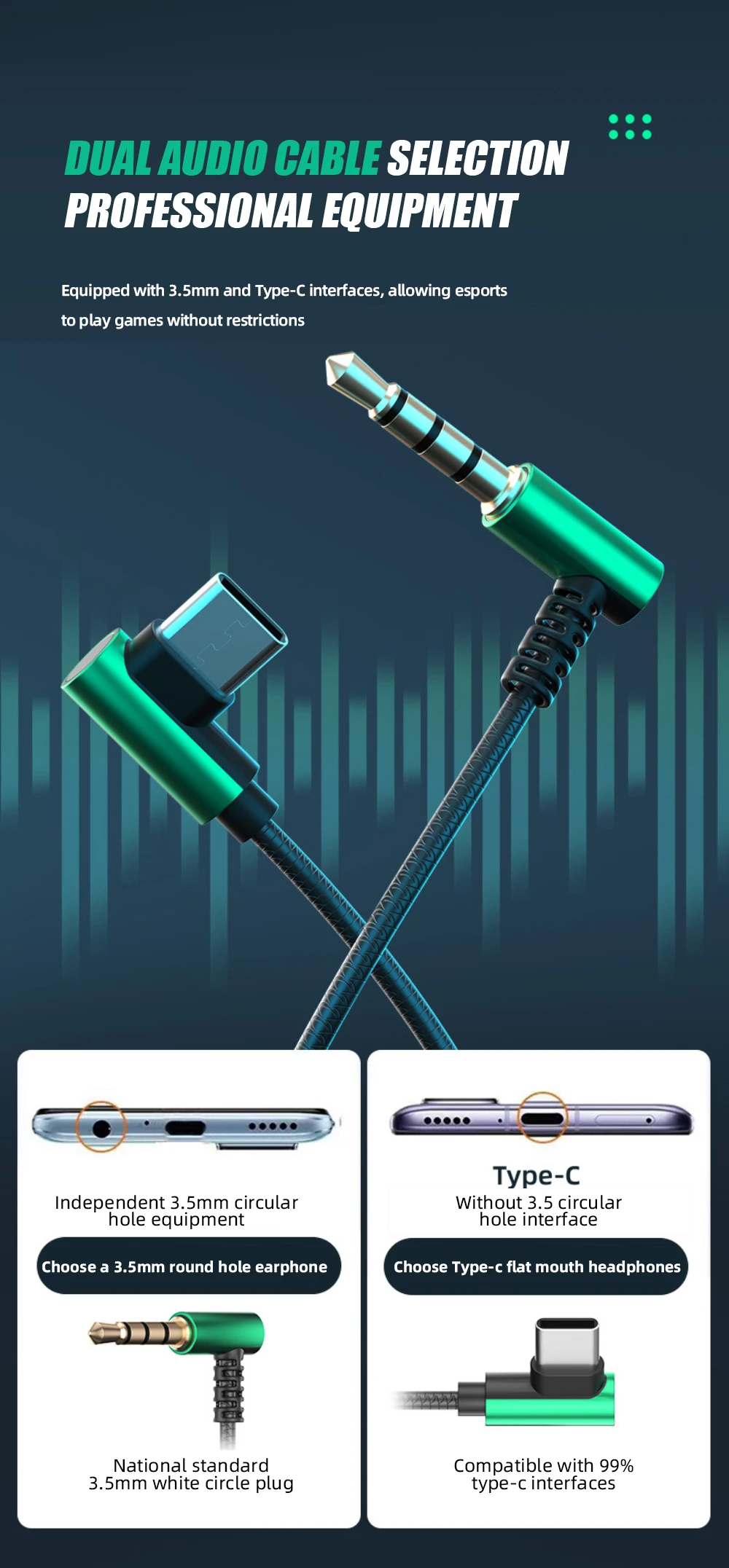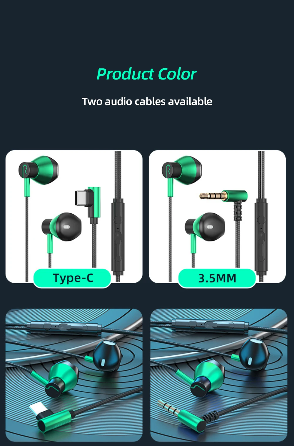 Color: azul oscuro agujero redondo de 3,5mm, espacio plateado agujero redondo de 3,5mm, verde eléctrico agujero redondo de 3,5mm, negro clásico agujero redondo de 3,5mm, azul oscuro Tipo-c boca plana, espacio plata Tipo-c boca plana, verde eléctrico Tipo-c boca plana, clásico negro Tipo-c boca plana