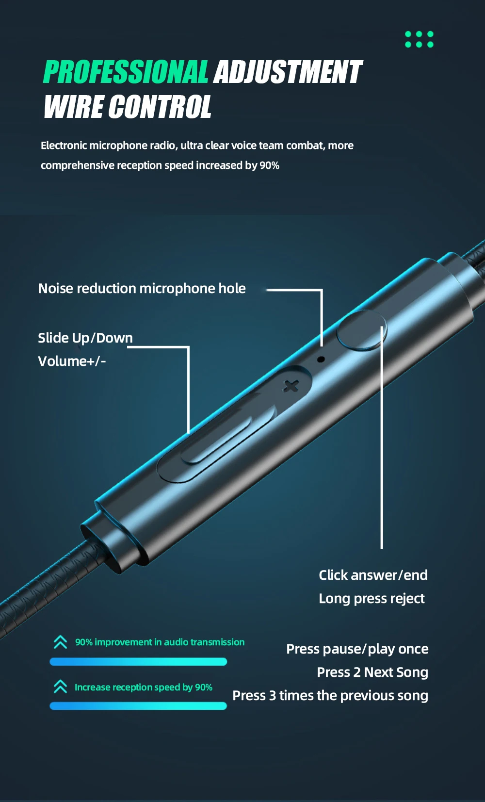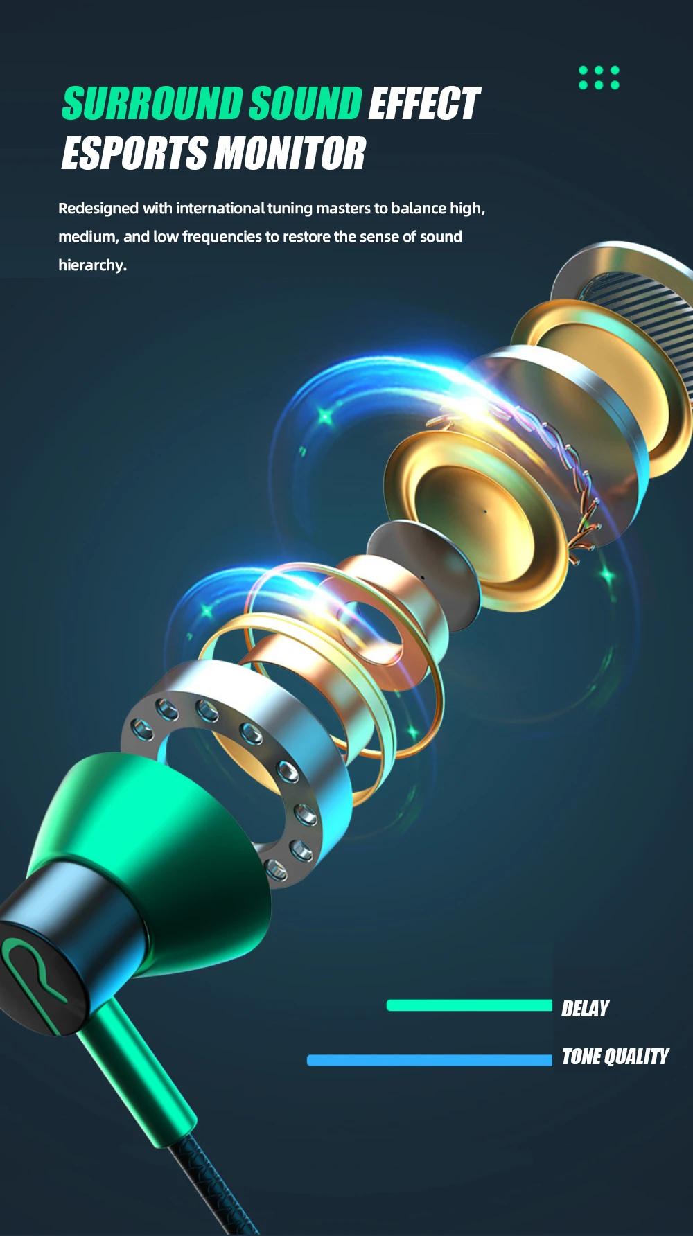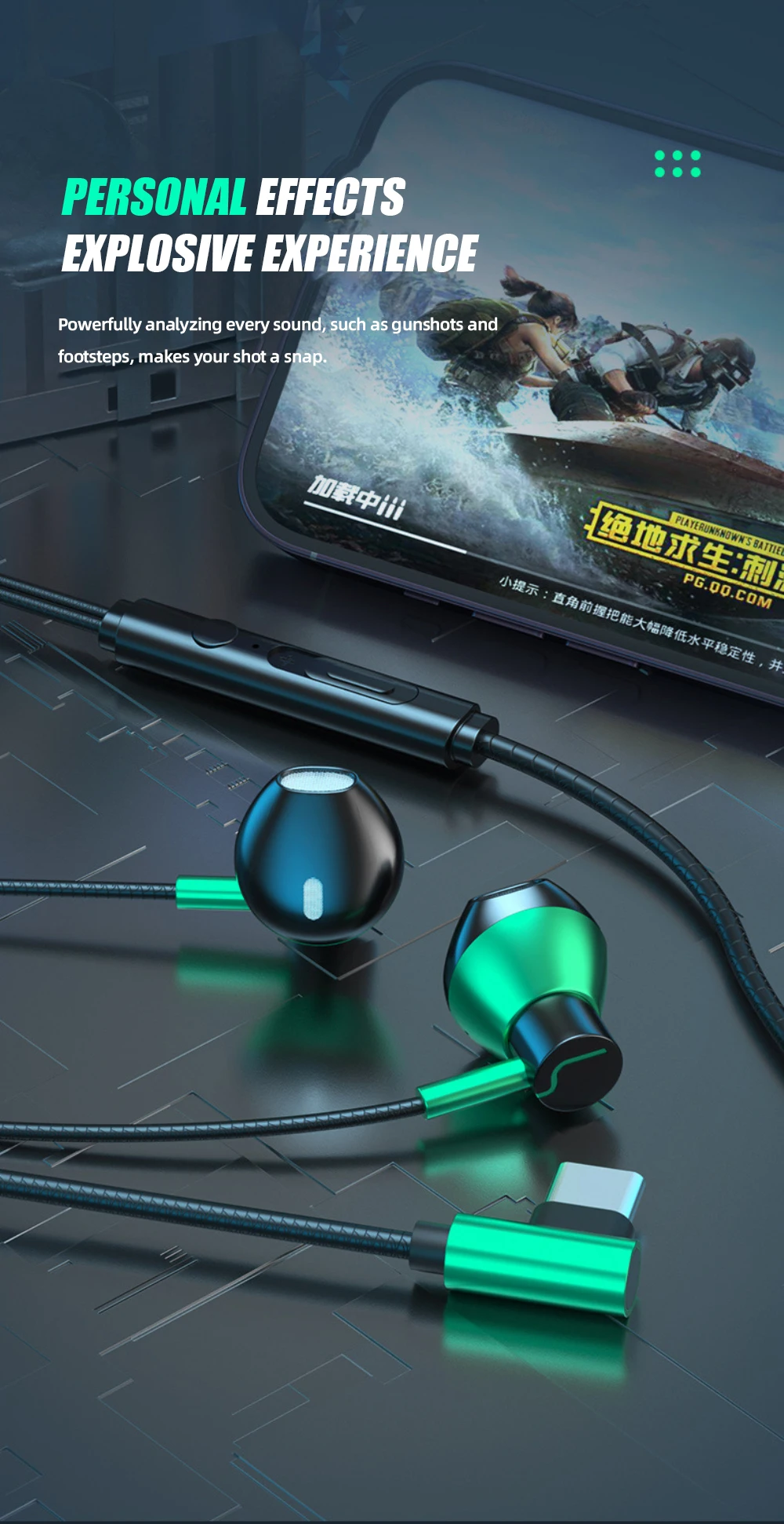 Auriculares de discriminación de sonido para Huawei OPPO Vivo, auriculares de videojuegos con cable con alta calidad