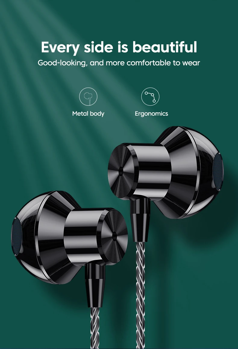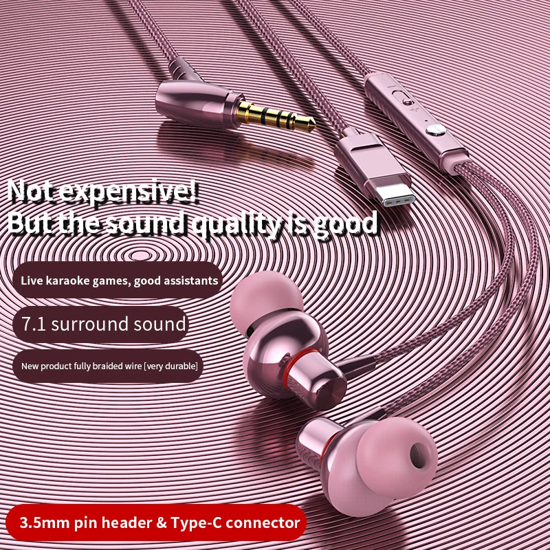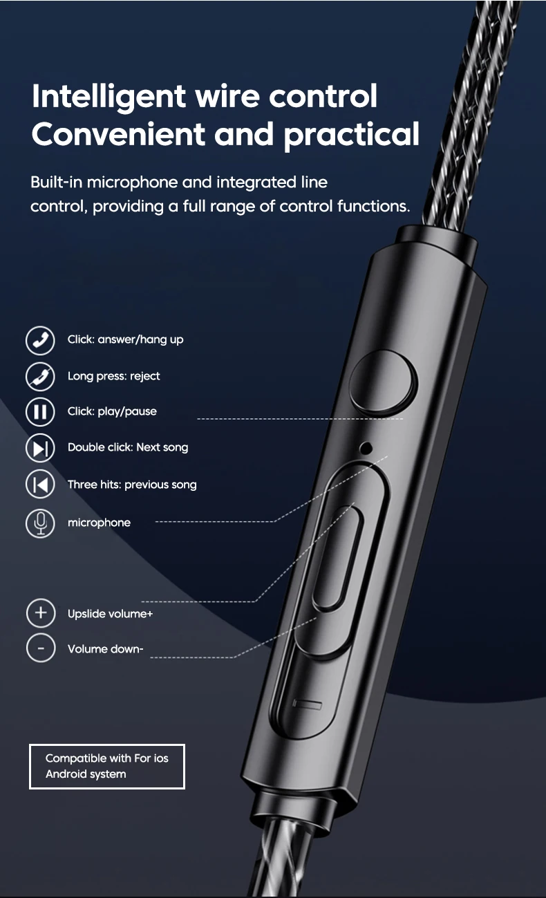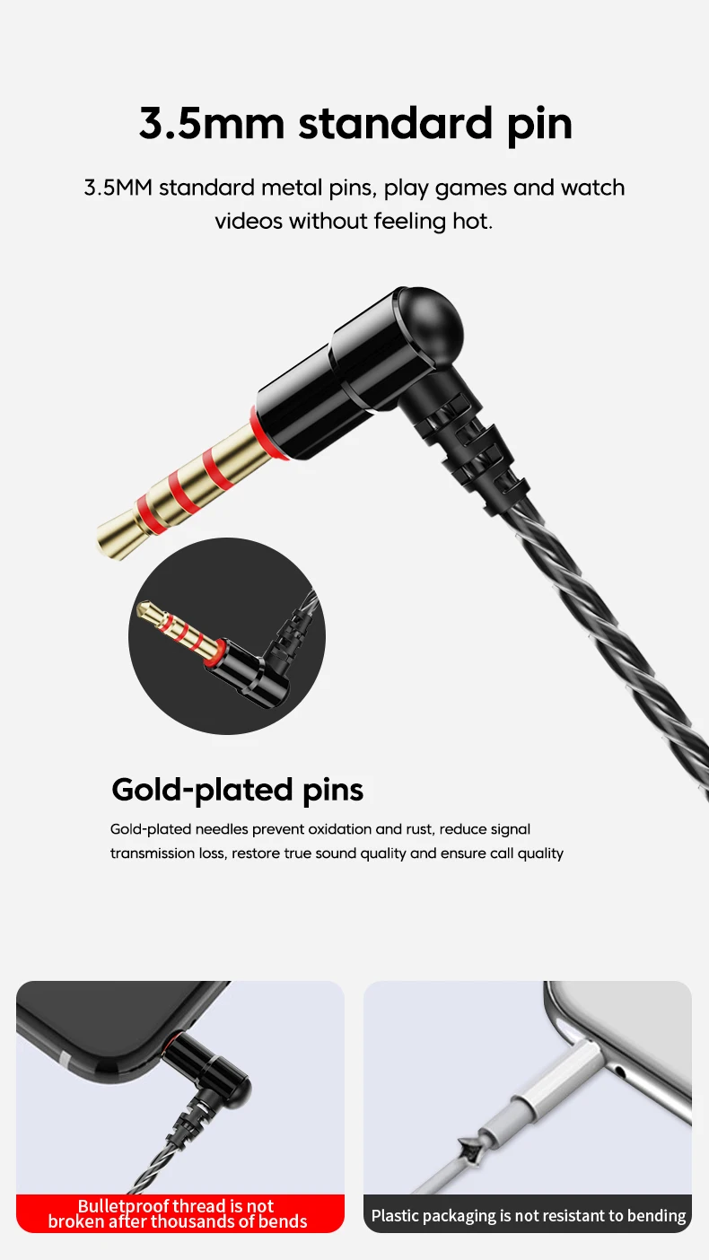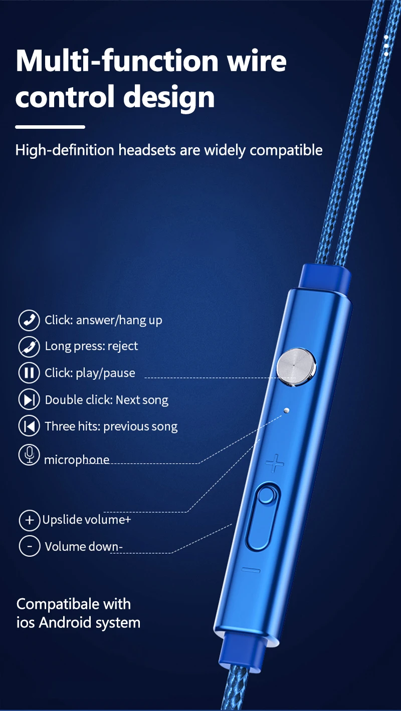 Comprar Auriculares con cable de Metal para teléfono móvil, audífonos con micrófono estéreo para juegos, con cable trenzado, reducción de ruido