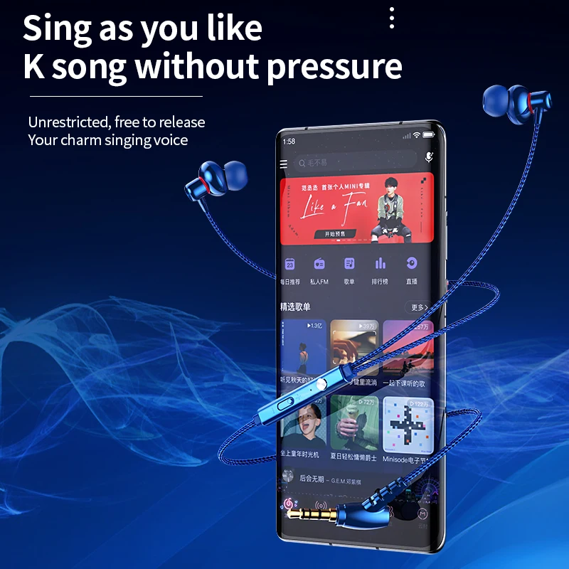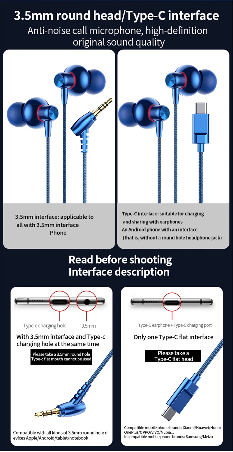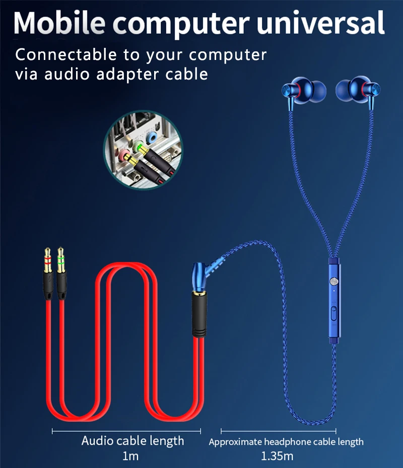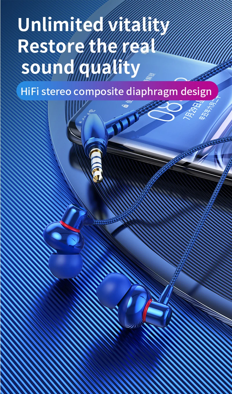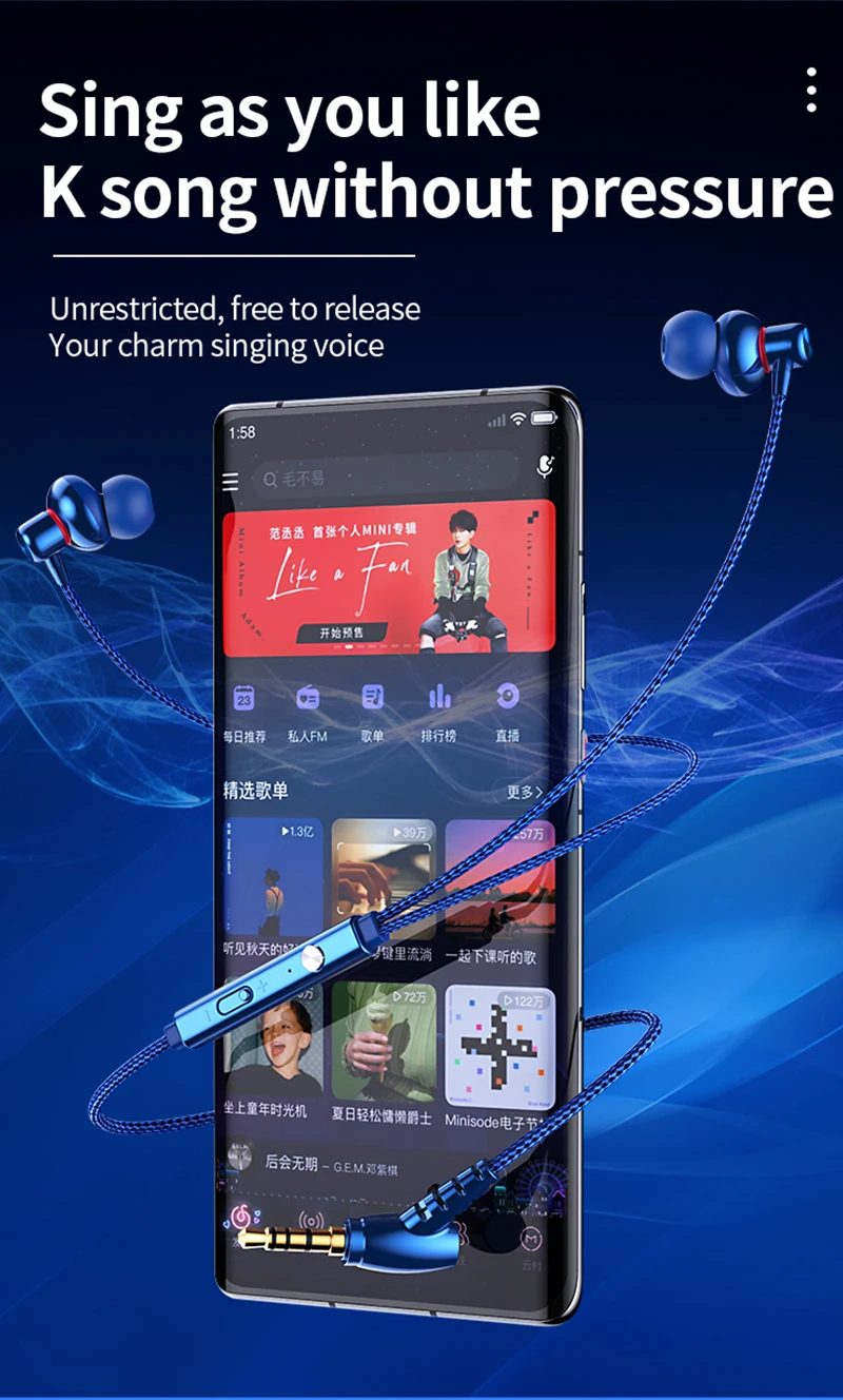 Comprar Auriculares con cable de Metal para teléfono móvil, audífonos con micrófono estéreo para juegos, con cable trenzado, reducción de ruido